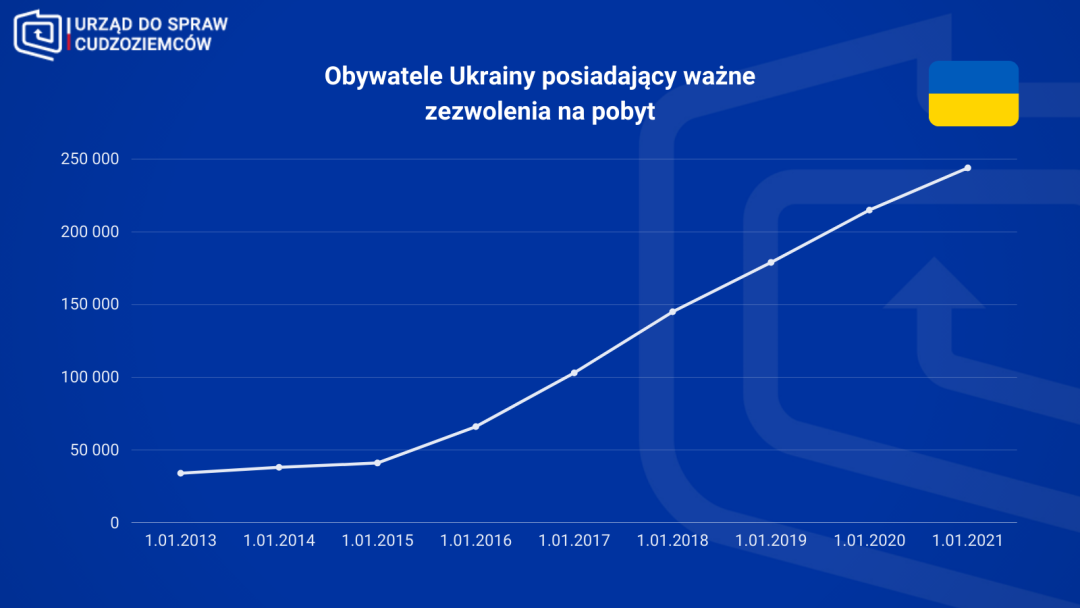 З початку 2015 року кількість українців, які мають карти проживання в Польщі, зросла уп’ятеро – з близько 50 тисяч до 250 тисяч осіб.