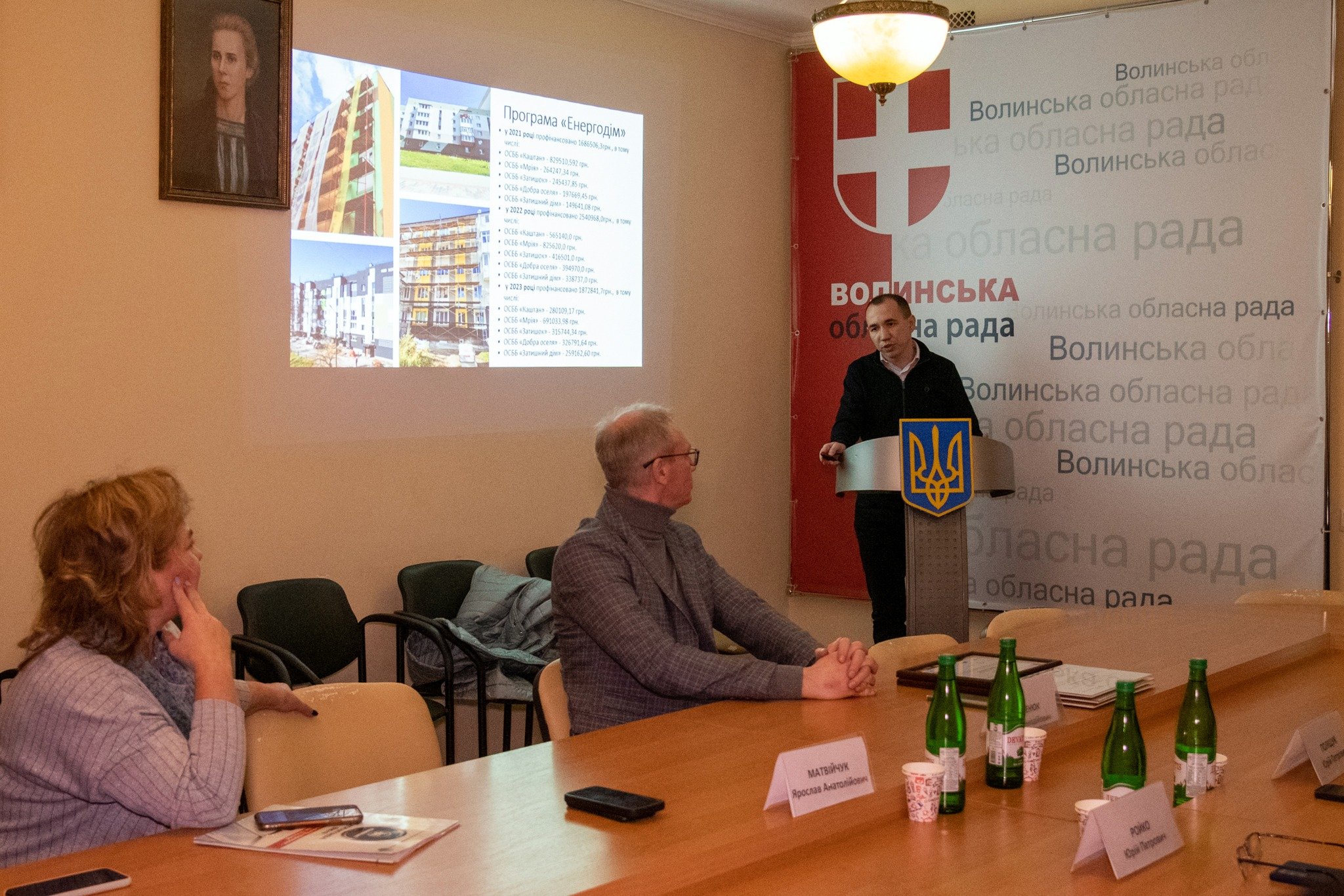 Голова наглядової ради Фонду Юлія Сабатюк зазначила, що, крім місцевих програм, додатковим механізмом підтримки ОСББ могла б стати і допомога обласного бюджету. З клопотанням про запровадження відповідної регіональної програми вона і звернулася до керівництва Волиньради.Перший заступник голови Юрій Поліщук погодився, що підхід багаторівневої підтримки правильний. «За такими програми майбутнє, їх треба ухвалювати і в громадах, і на рівні області. Енергоощадним технологіям нема альтернативи, це вигідно усім – і людям, і громадам, і державі. Тож, переконаний, депутати обласної ради підтримають цю пропозицію», – зазначив Юрій Поліщук. Заразом він додав, що наступного року обласний бюджет матиме критично обмежені ресурси, і це єдина перешкода для реалізації ініціативи.