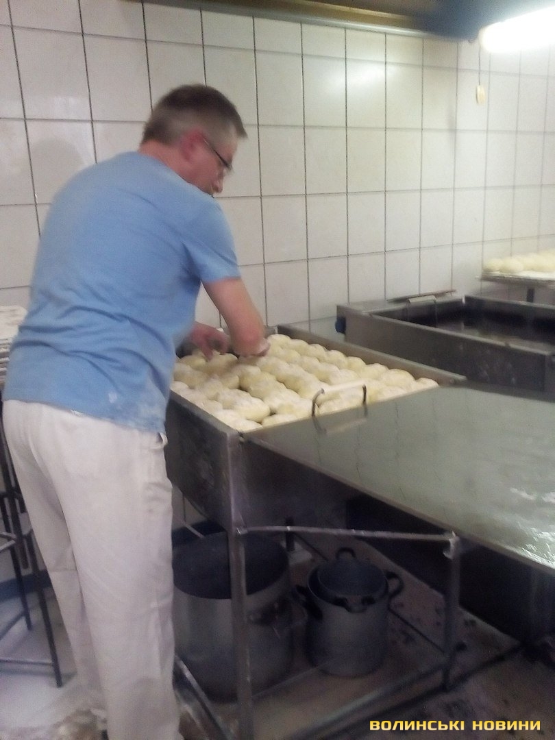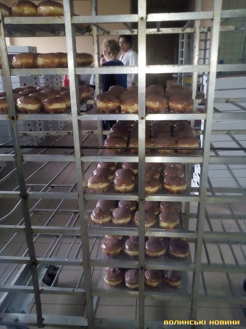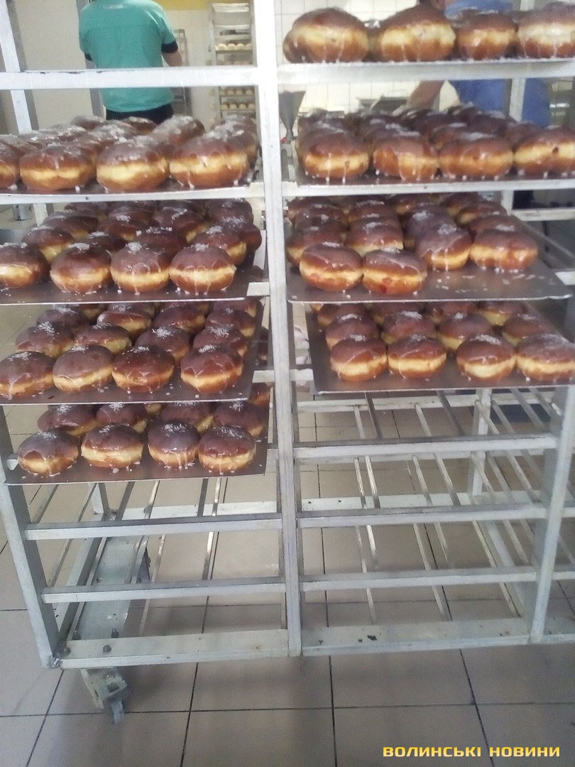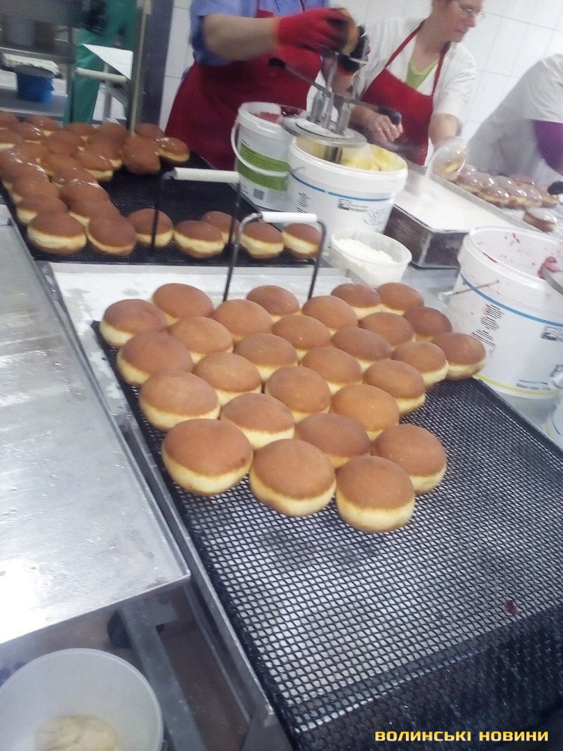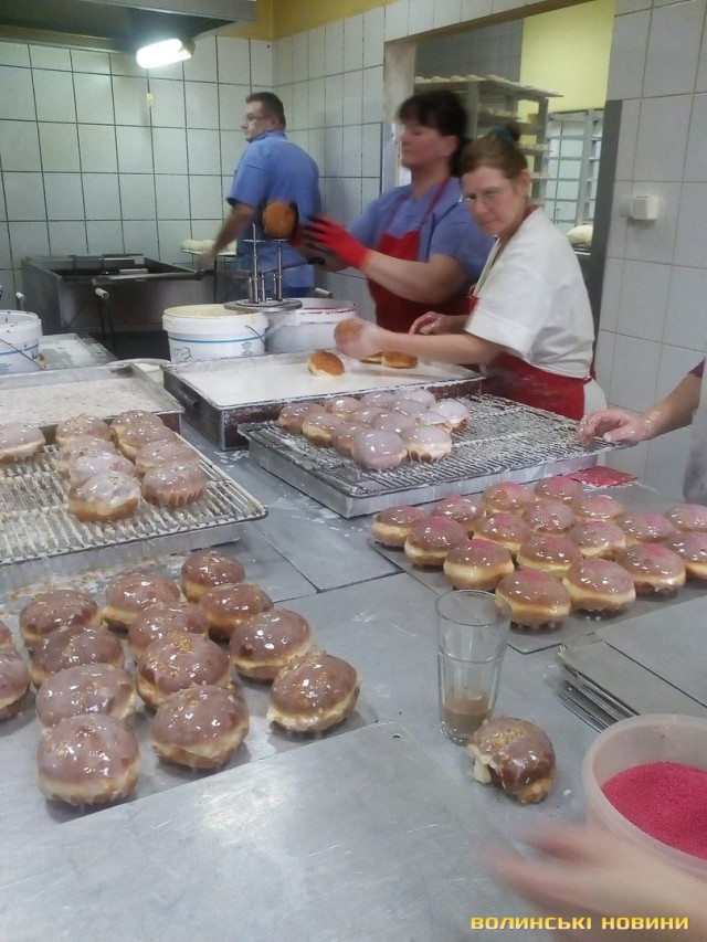 На смаження пончиків тут потребують додаткових рук. Замовлення у 35 тисяч пампушок треба виконати за добу. Шеф виробництва Дарек, весь у білому й усміхнений, каже, що це реально. О шостій ранку пекарі замісили першу партію тіста, якого вистачить на третину потрібної кількості. У цеху виблискують величезні металеві столи, стелажі, бляхи, решітки, три пательні-фритюрниці. Тутешні працівниці, які пережили вже не один День пончика, попереджають новачків, що сьогодні буде важко, та найгірше – завтра. Бо доведеться реанімувати цю чистоту важкими зусиллями.