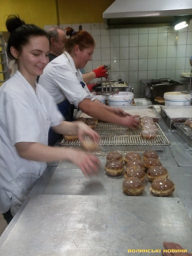 Цех наповнювався запахом пересмаженої олії, сизим димом, високою температурою, патьоками глазурі на столах і підлозі. Мали тримати темп партія за партією, адже терміни обмежені – лише до наступного ранку. «Це найгірша ніч у році, – зізналася власниця закладу пані Аня. – Роботи багато, часу обмаль, люди без відпочинку більш як добу. Ставимо ціну 1,5-2 злотих за пончик, а в конкурентів – 40 грош. Бо продають не свіжі, а заморожені ще кілька місяців тому».