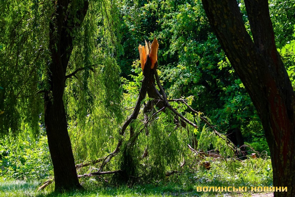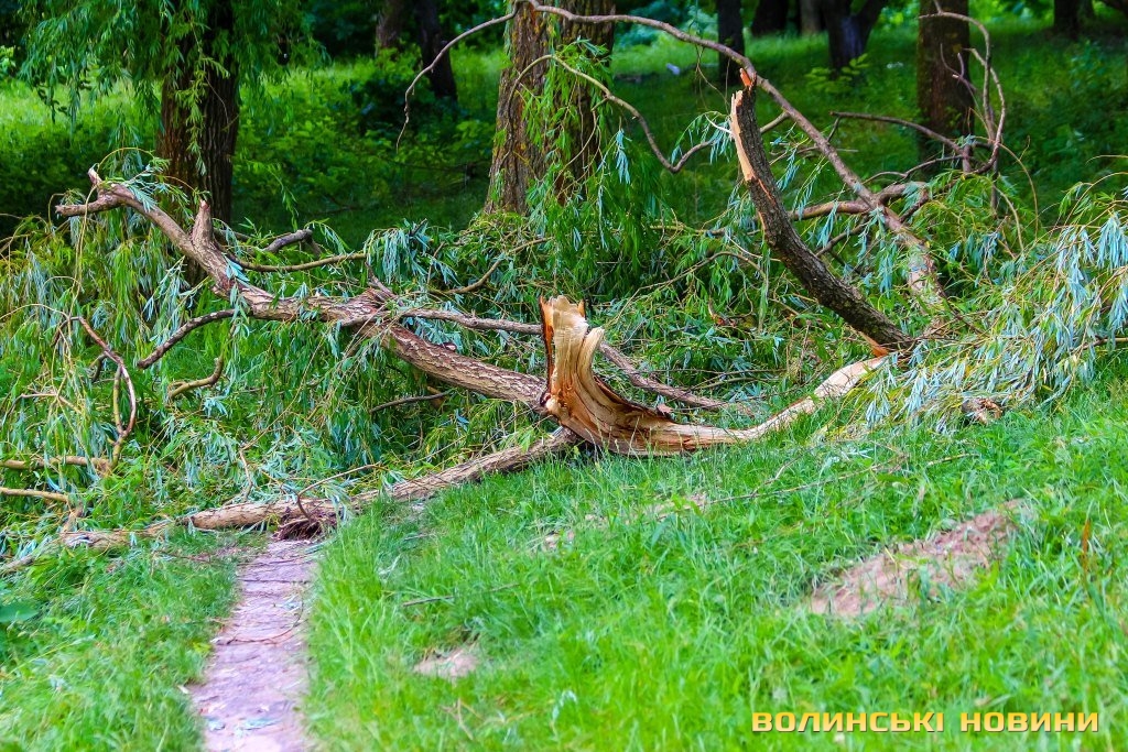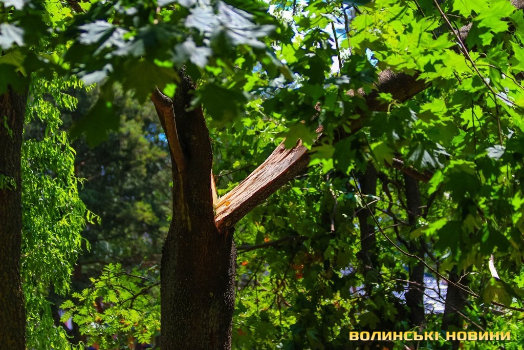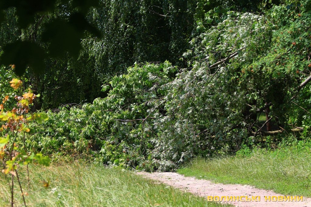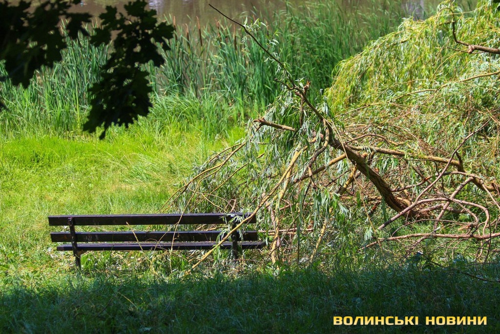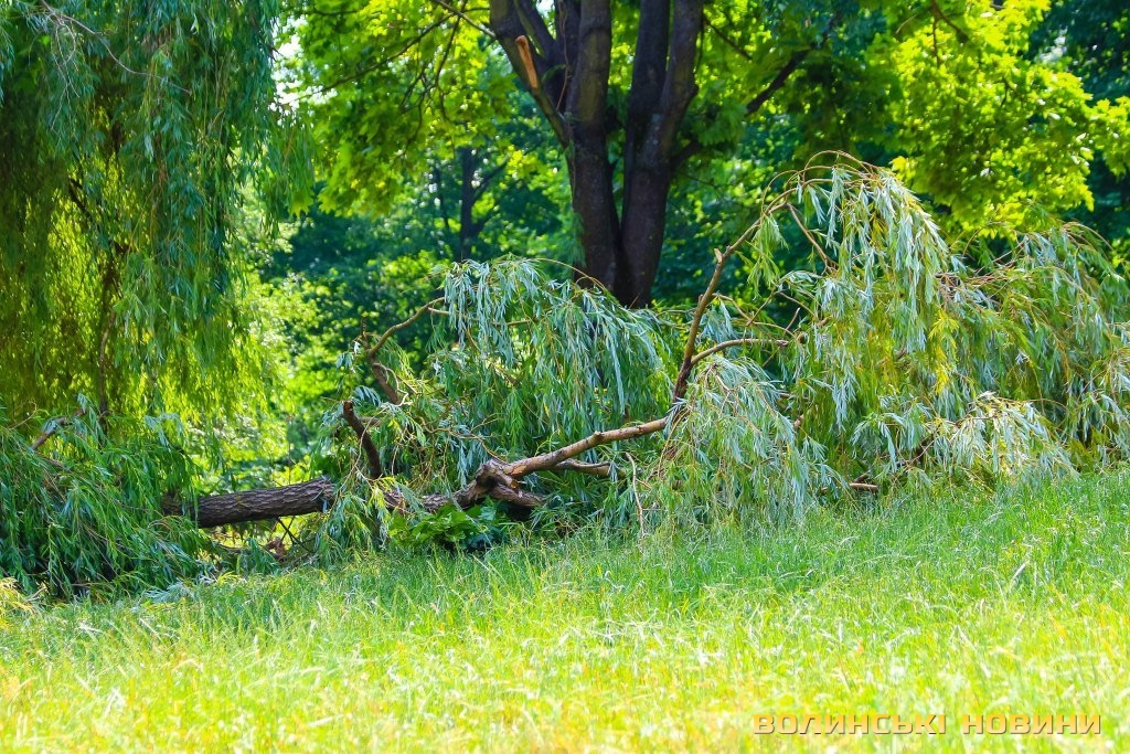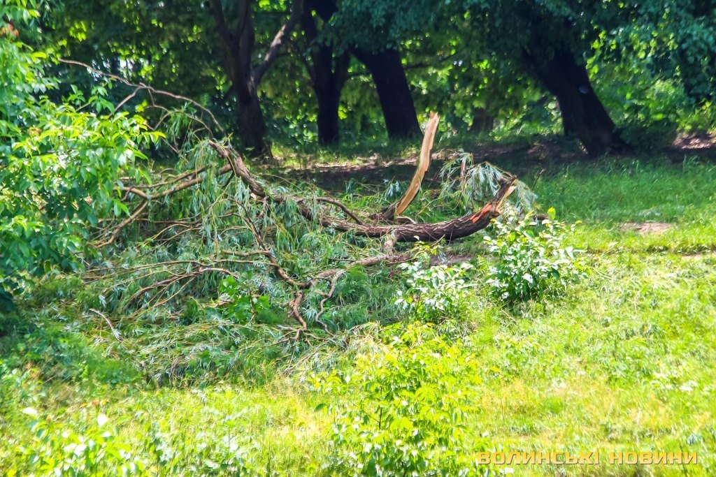 Чимало повалених сильним вітром дерев та поламаного гілля у парку імені 900-річчя Луцька лишила після себе негода, яка лютувала у Луцьку 18 червня.