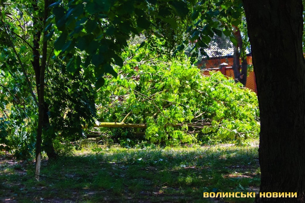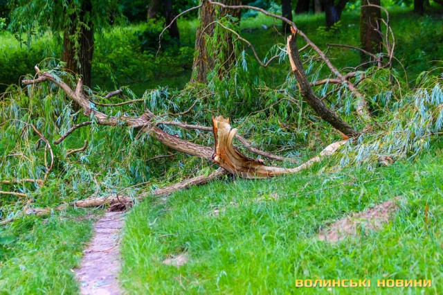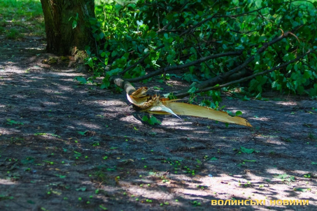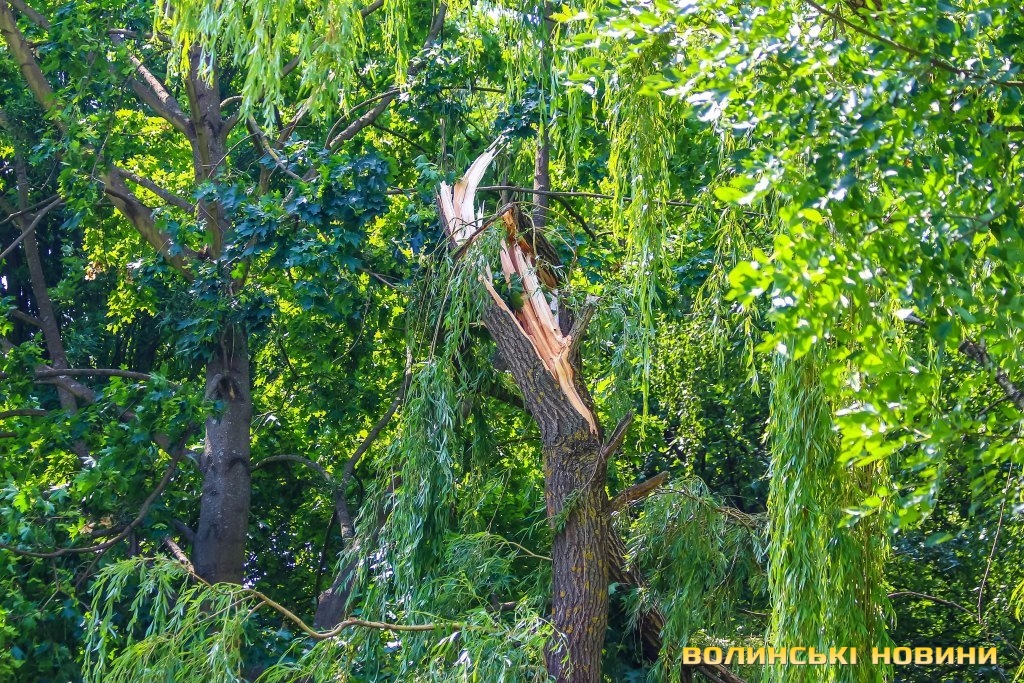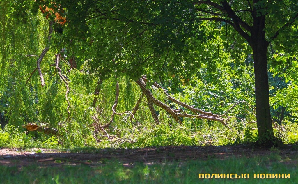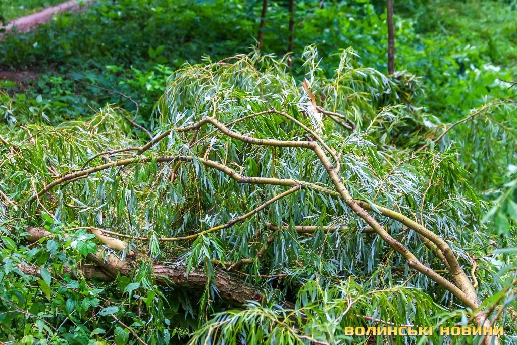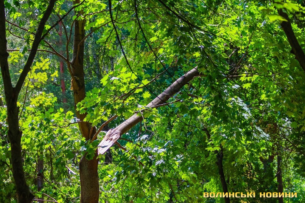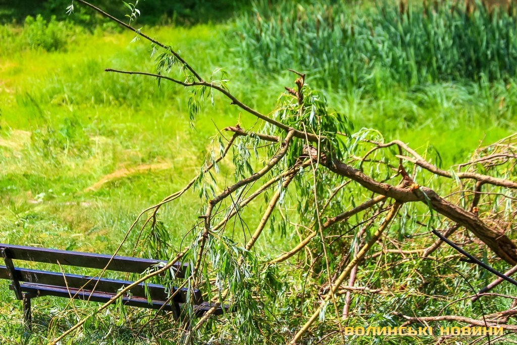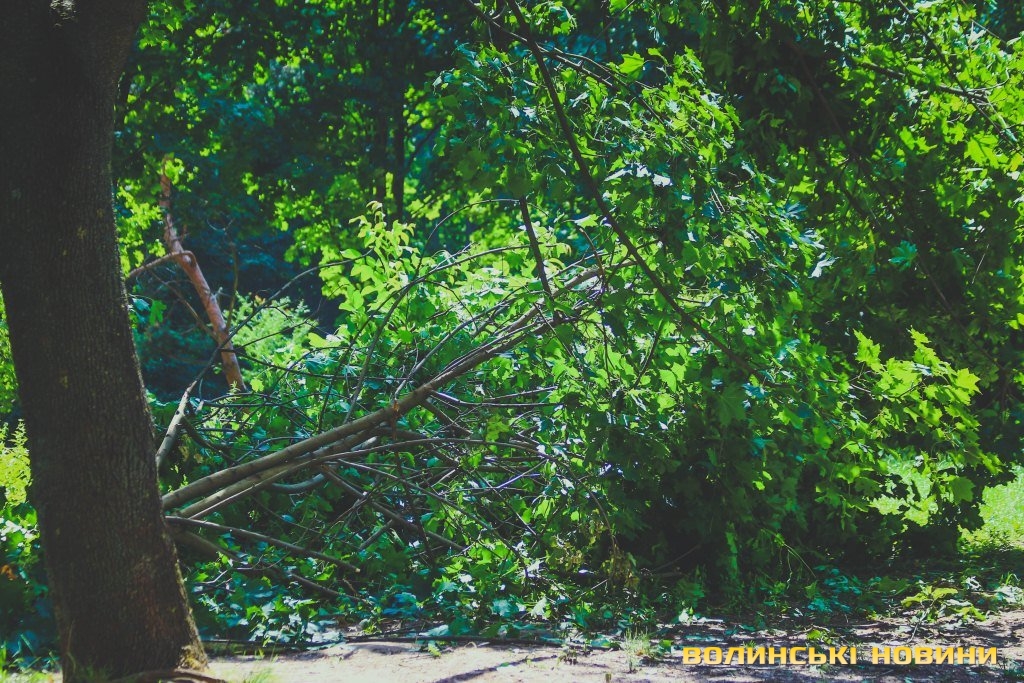 Чимало повалених сильним вітром дерев та поламаного гілля у парку імені 900-річчя Луцька лишила після себе негода, яка лютувала у Луцьку 18 червня.