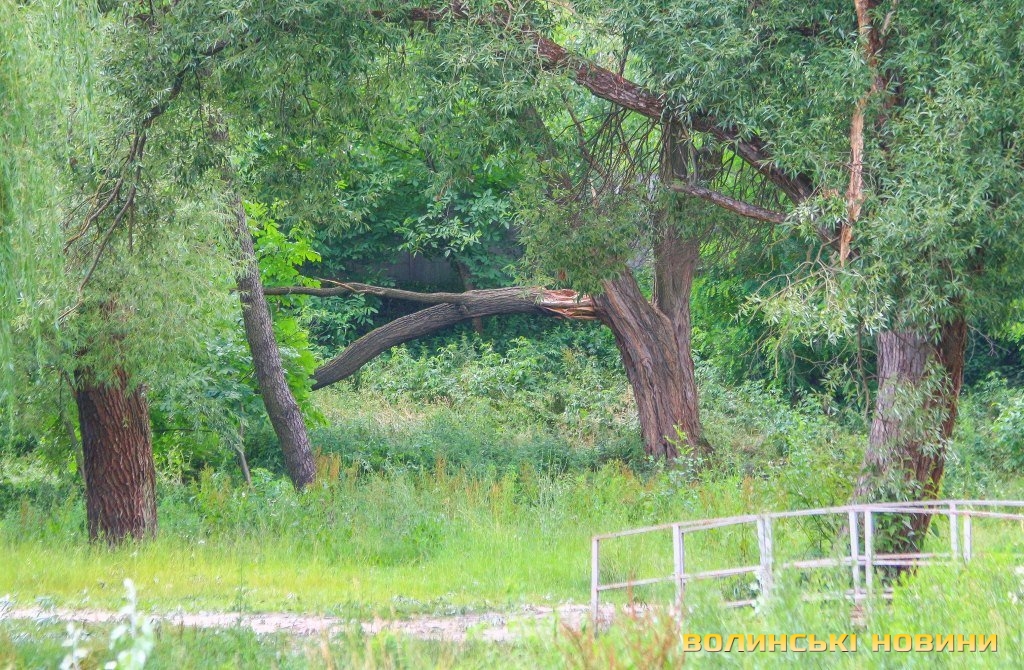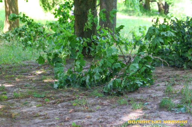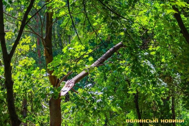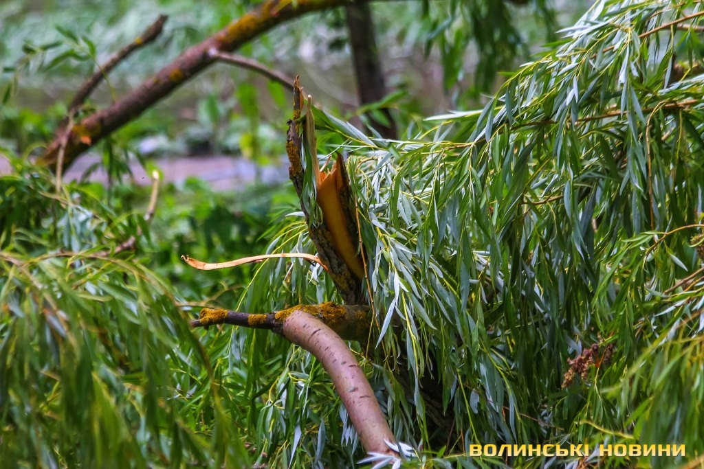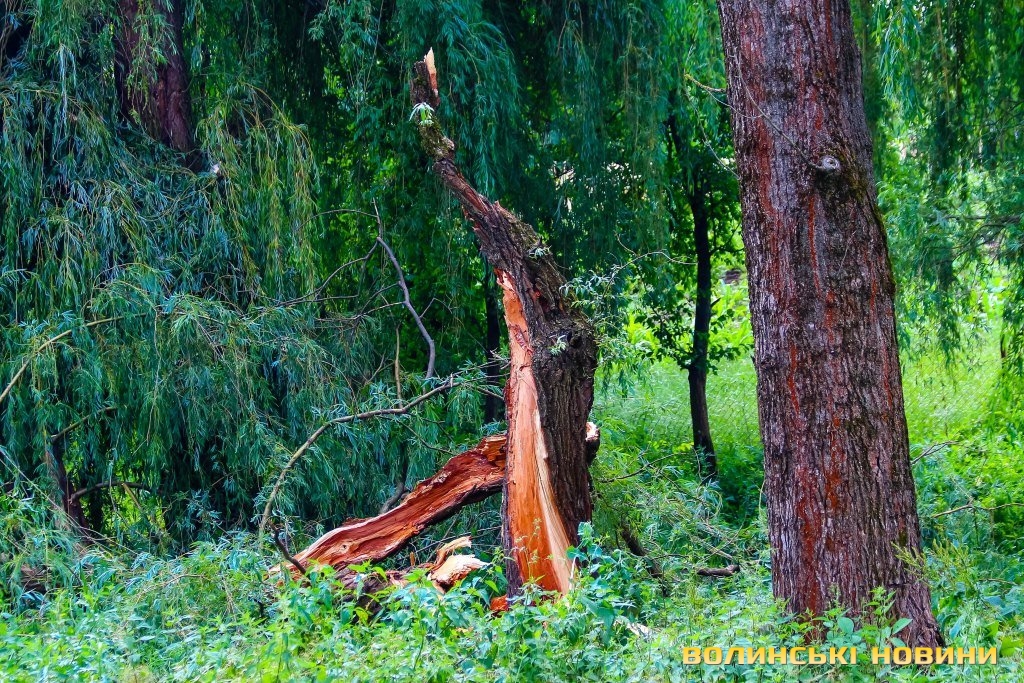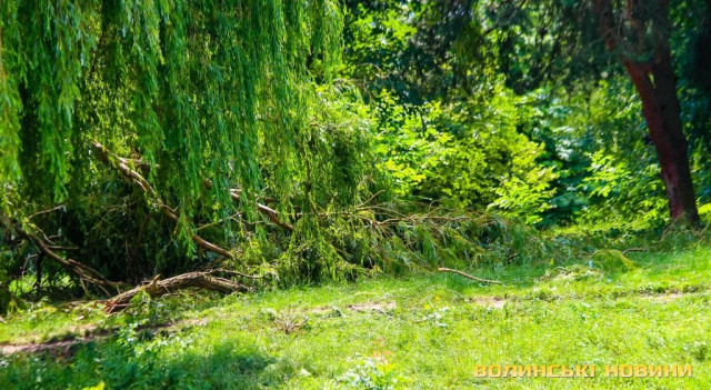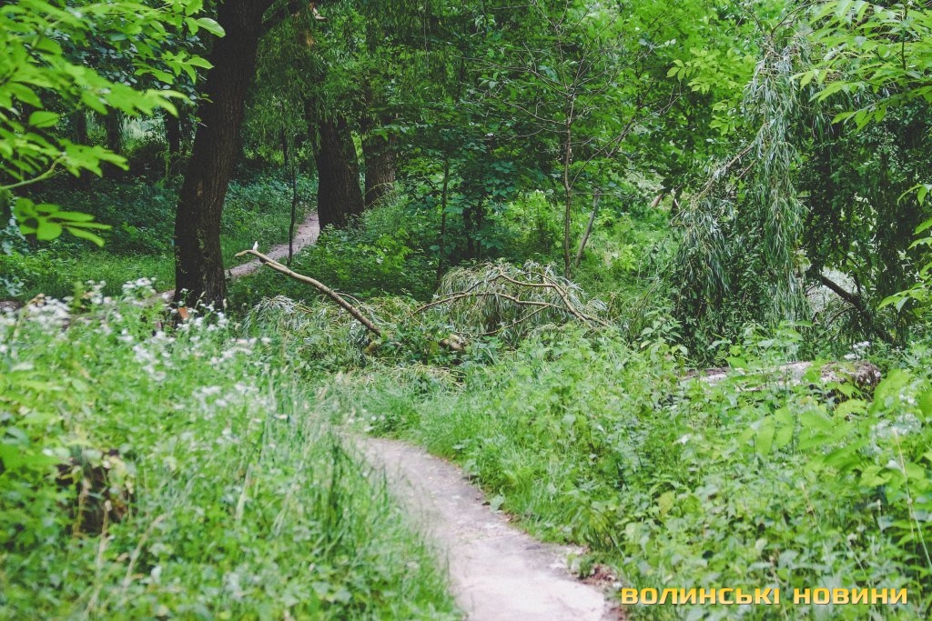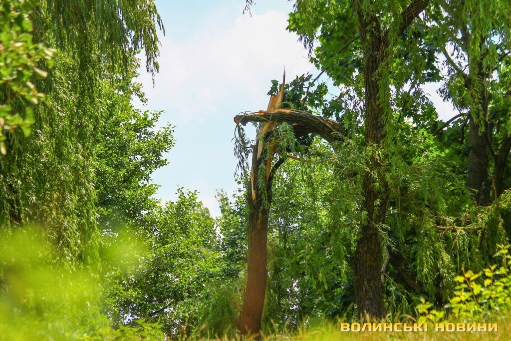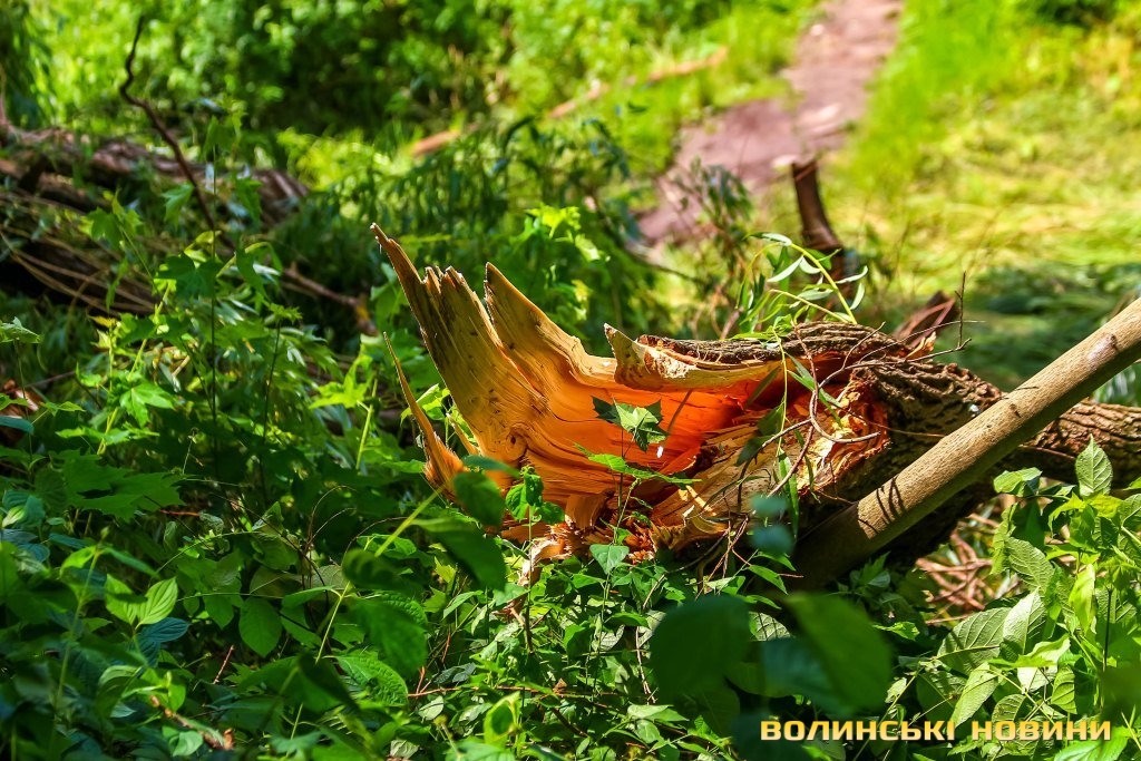 Чимало повалених сильним вітром дерев та поламаного гілля у парку імені 900-річчя Луцька лишила після себе негода, яка лютувала у Луцьку 18 червня.