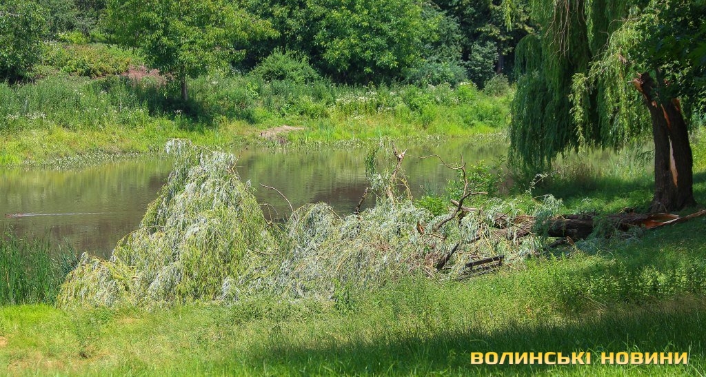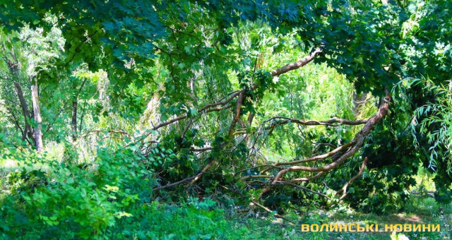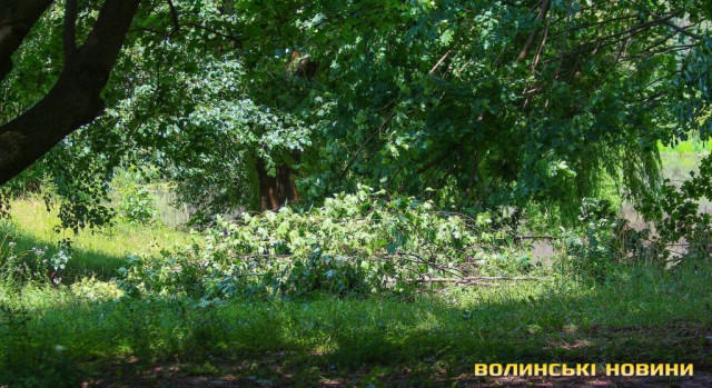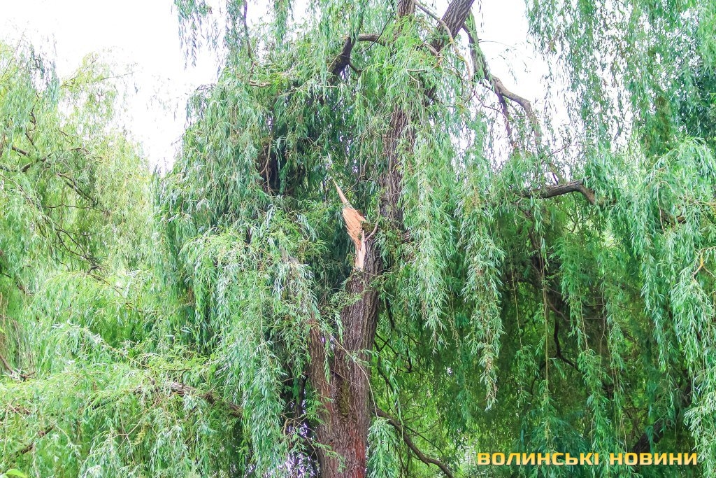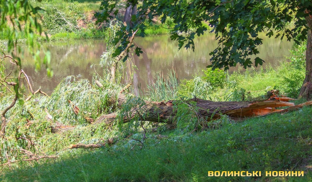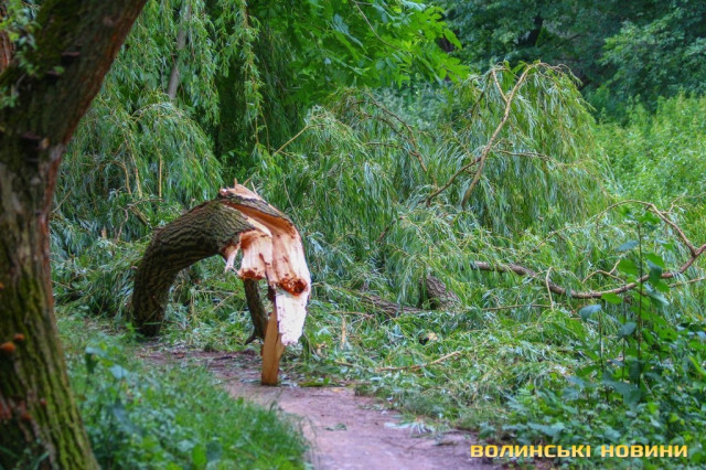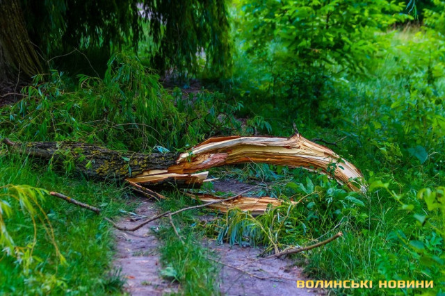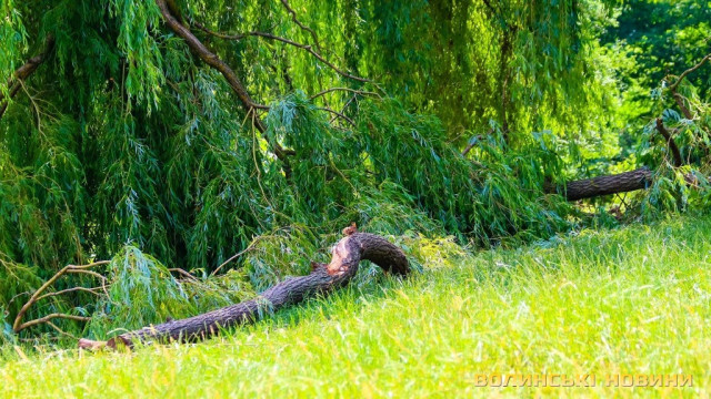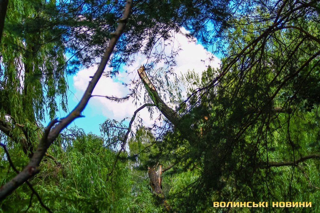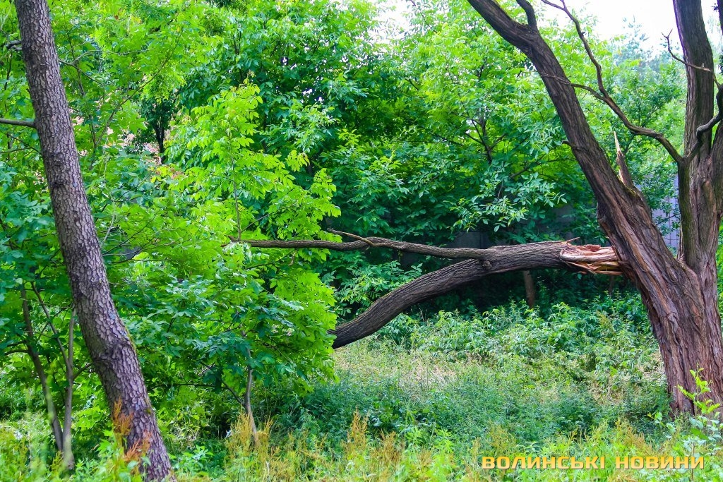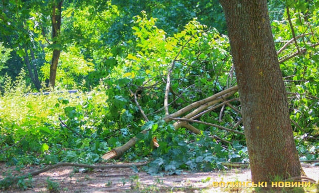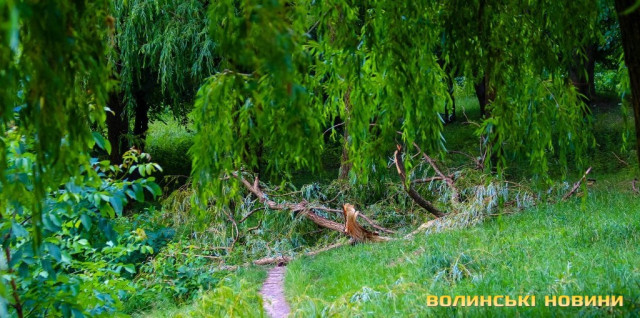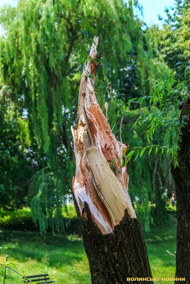 Чимало повалених сильним вітром дерев та поламаного гілля у парку імені 900-річчя Луцька лишила після себе негода, яка лютувала у Луцьку 18 червня.