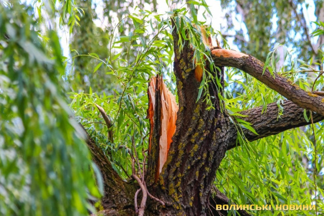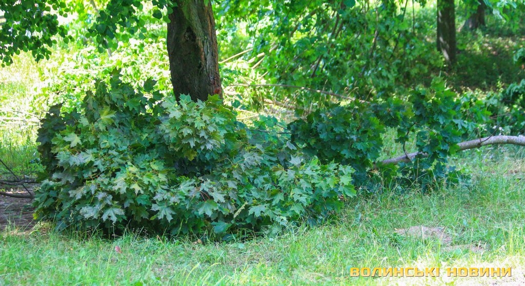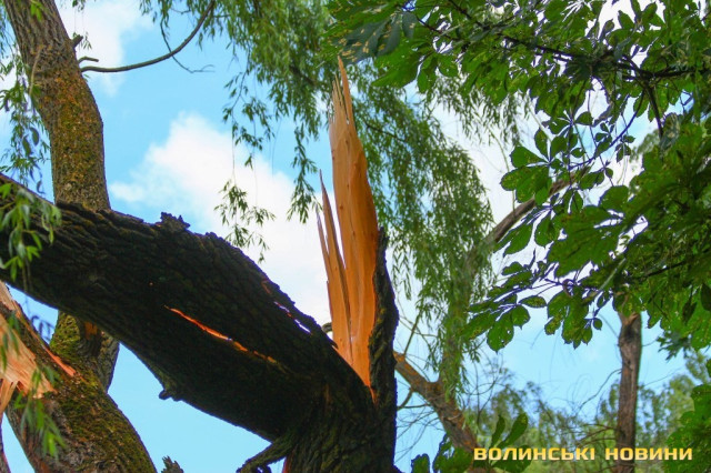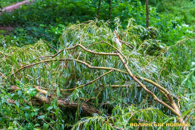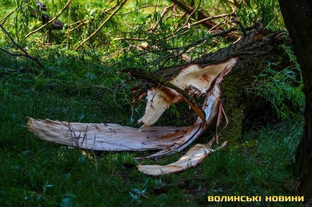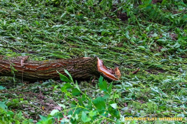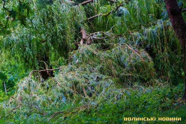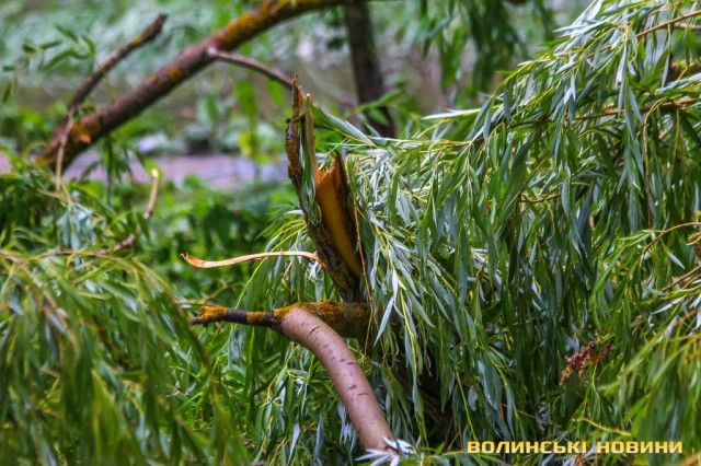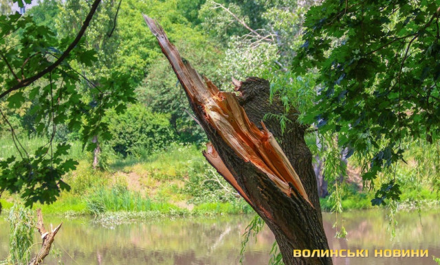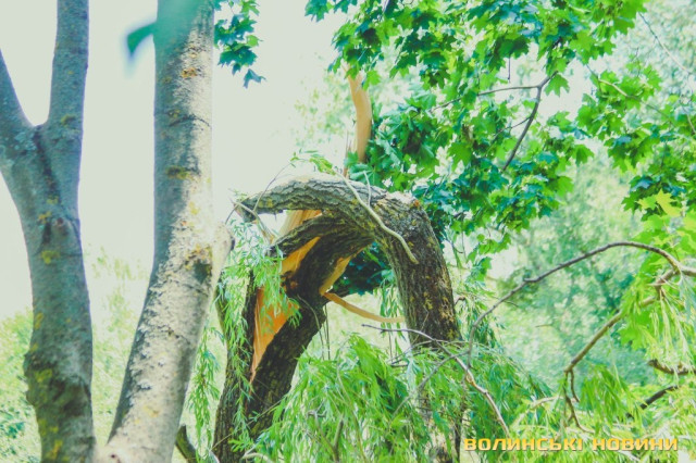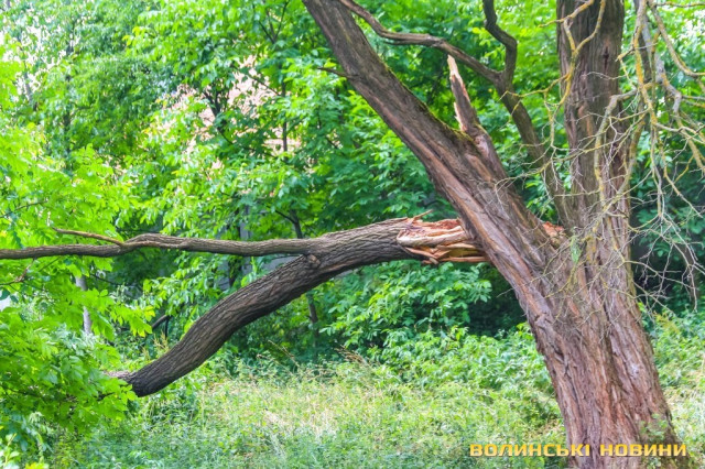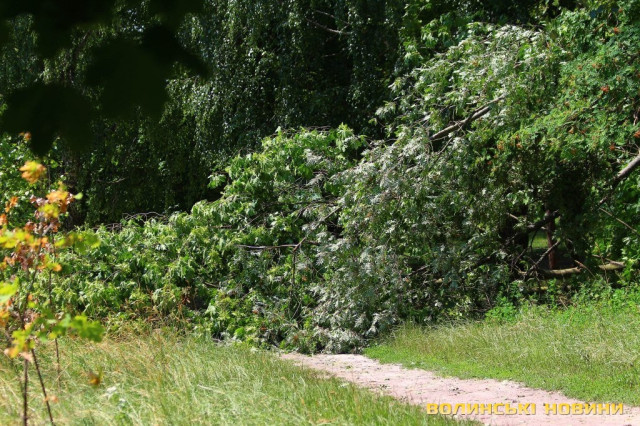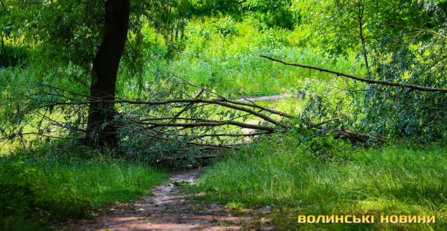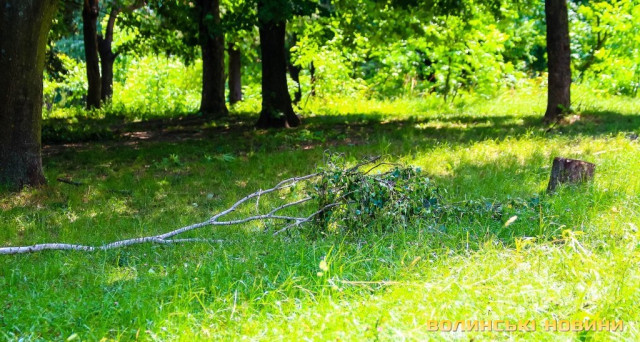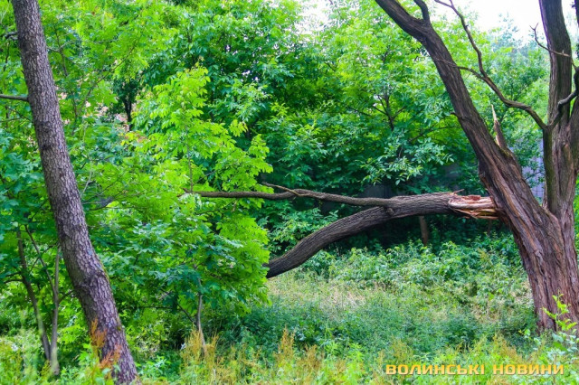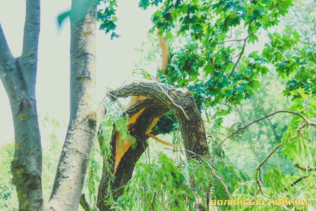 Чимало повалених сильним вітром дерев та поламаного гілля у парку імені 900-річчя Луцька лишила після себе негода, яка лютувала у Луцьку 18 червня.