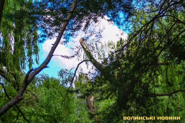 Понівечені та повалені дерева: наслідки негоди у парку імені 900-річчя Луцька