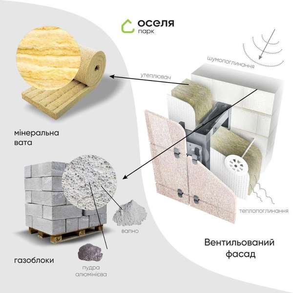 Разом із цим у ЖК «Оселя парк» використовують вищезгадану мінеральну вату, яка у п’ять разів дорожча за традиційний пінопласт