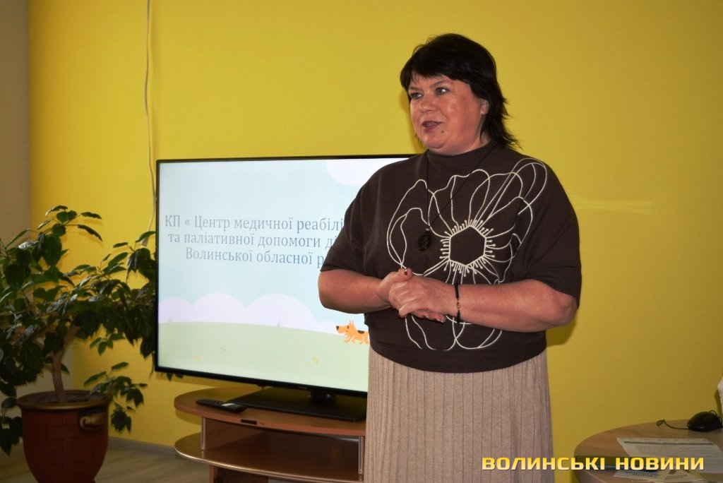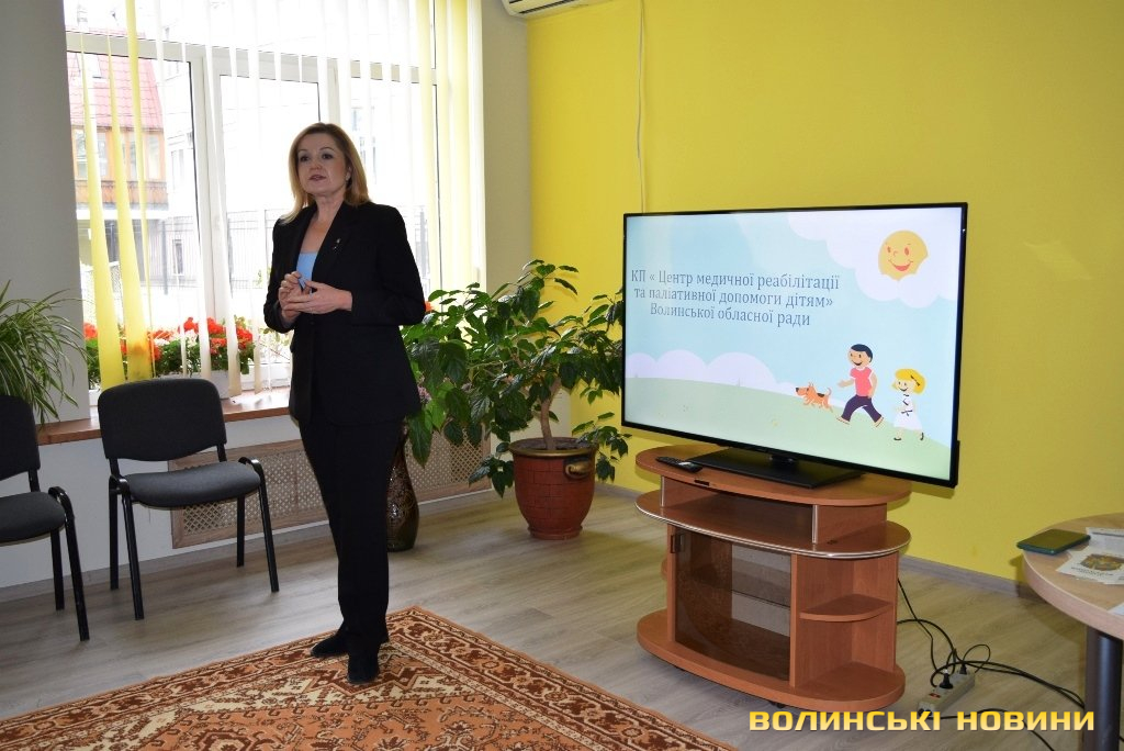 І сьогодні, переступивши поріг Центру медичної реабілітації та паліативної допомоги дітям, ми бачимо разючі зміни в частині доступності послуг та матеріально-технічного забезпечення закладу. Це тішить і надихає, зміцнює віру в те, що в Україні є майбутнє. І ми дуже вдячні всім, хто причетний до цієї програми – спонсорам, донаторам, партнерам».«Завдяки роботі команди Центру сьогодні ми маємо унікальну можливість надавати соціальні послуги сім'ям та діткам, які потребують особливої уваги. Ваш заклад є унікальним, тому що саме цю соціальну послугу надають висококваліфіковані спеціалісти. Ви маєте залучений медичний персонал, психологів, вихователів, – акцентувала Ірина Чебелюк. – І дуже правильно, що ви організовуєте такий захід, щоб поділитися своїми досягненнями».Директорка Волинського обласного центру соціальних служб Ольга Ярощук зауважила, що донедавна послуга раннього втручання на Волині була практично відсутня, тому проєкт, що його реалізовуватиме Центр медичної реабілітації та паліативної допомоги дітям, як ніколи на часі.Керівниця ГО «Батьків дітей із синдромом Дауна та іншими порушеннями розвитку» Олена Мельник висловила сподівання, що тісна співпраця із Центром медичної реабілітації та паліативної допомоги дітям триватиме й надалі.«Тішуся тим, що маємо таку можливість розширювати послуги для дітей з інвалідністю», – додала вона.