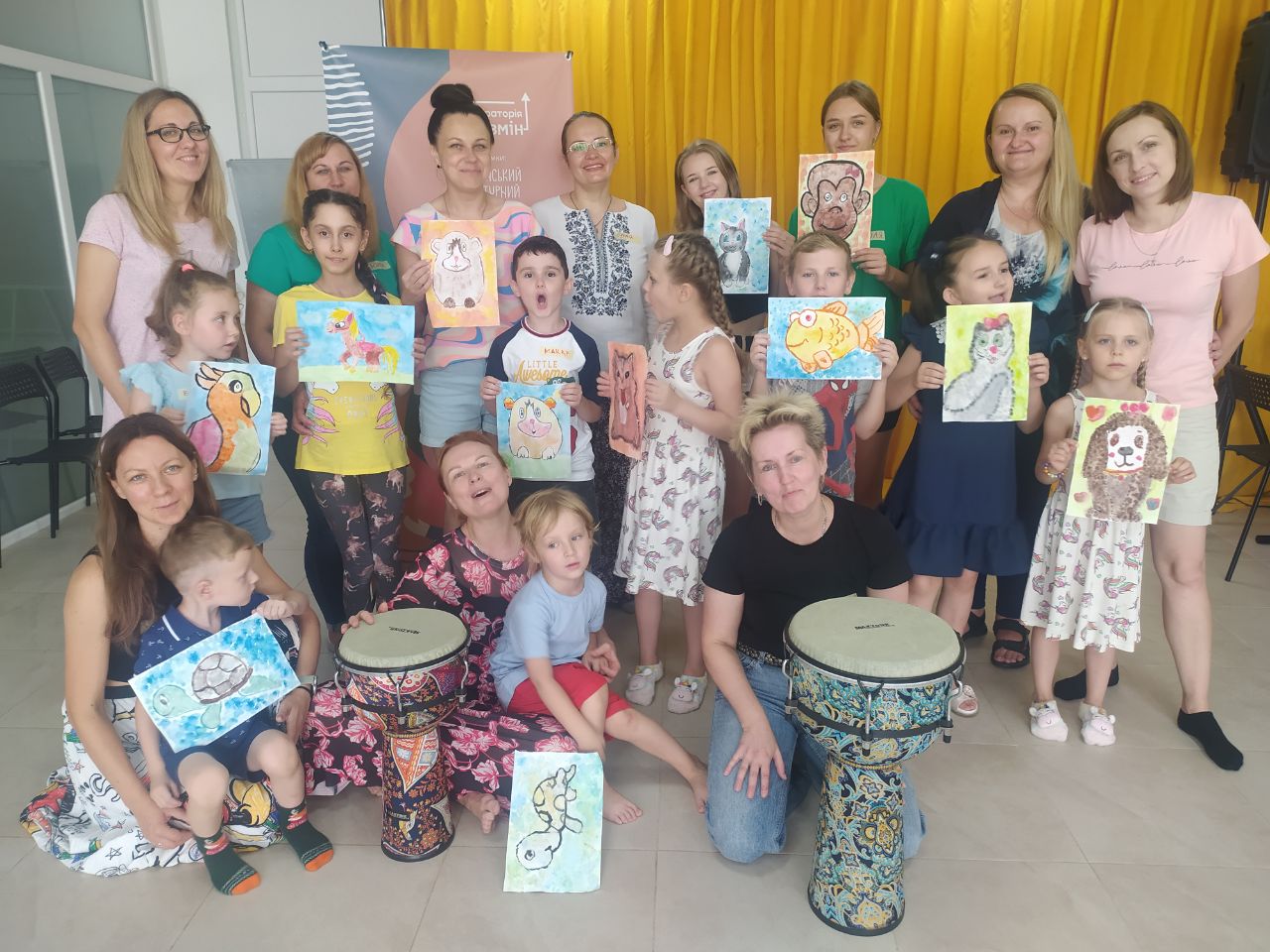 Крім мистецьких таборів, у нас ще були заняття. Варто зазначити, що коли проводимо їх для дітей, то завжди залучаємо батьків. Через роботу, інші обставини у них може не бути багато часу на спілкування з дитиною. А за півтори-дві години вони можуть побути разом, щось створити, пограти на музичних інструментах і в такий спосіб отримати психологічну розрядку.