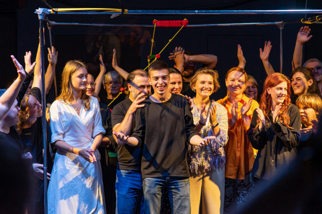 У мистецькому таборі ми вирішили спробувати партисипативні театральні практики. Вони передбачають створення вистави за історіями самих учасників. Спеціальні заняття з психологом, арттерапевтом, музичним терапевтом допомагають їм висловитися, розказати про наболілі проблеми. Із історій цих людей формується сама вистава.У нас були дві абсолютно різні постановки. Одна із них – «Щасливі люди» режисера Віталія Люботи. Це вистава про філософське питання, яке турбує кожну людину: «Що таке щастя?» Про те, як бути щасливим у цьому світі, особливо, коли ти певною мірою віддалений від суспільства і ще більше відчуваєш суспільний тиск, адже не такий, як усі.