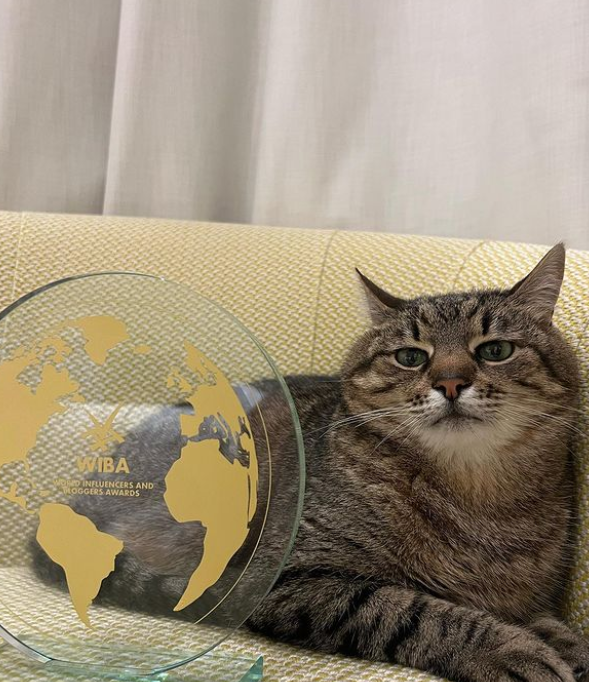 Також на сторінці у соціальній мережі була опублікована світлина самого кота на дивані разом із премією.