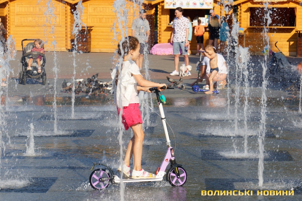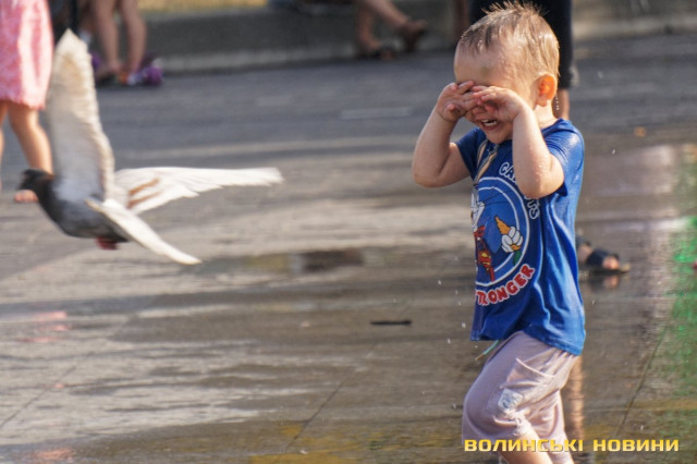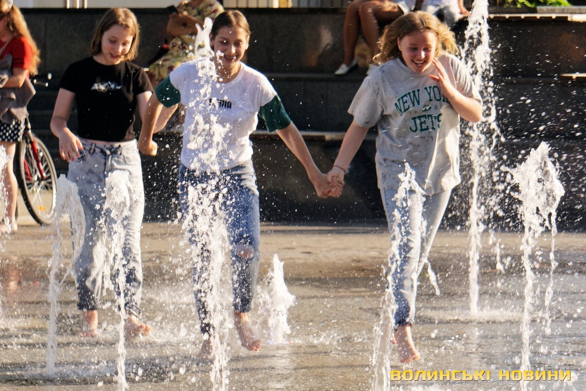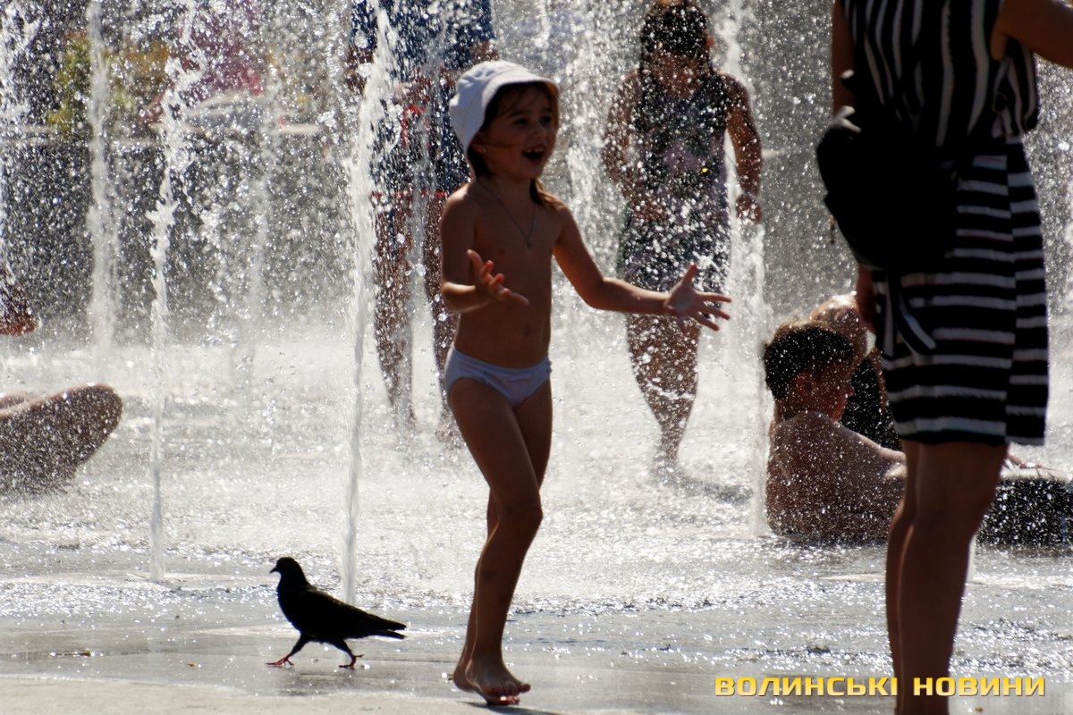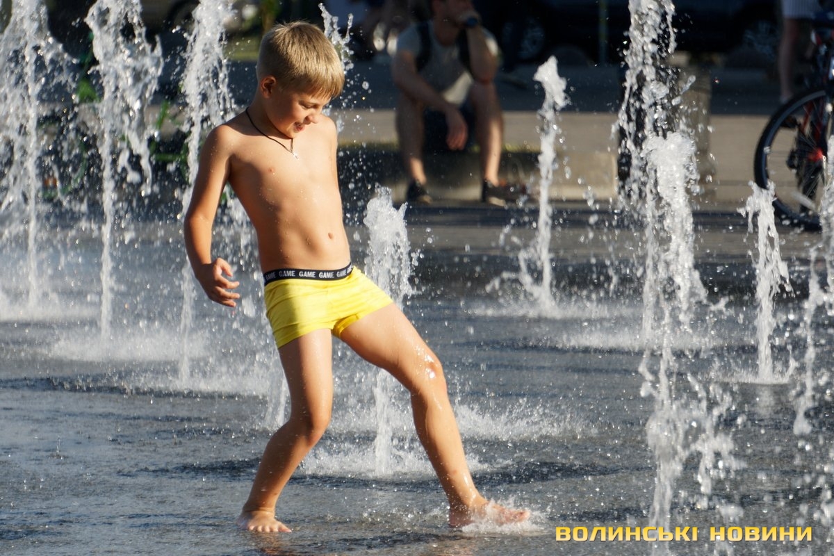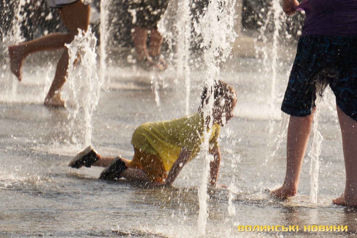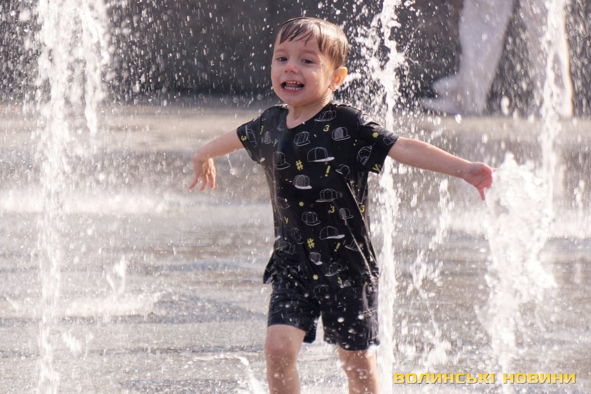 Яскраві моменти веселощів біля фонтанів та інших способів порятунку лучан від спеки – у підбірці світлин від Інформаційного агентства Волинські Новини.
