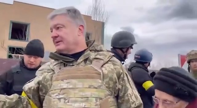 Петро Порошенко з дружиною приїхав в Ірпінь, аби на камеру показати, як вони допомагають евакуйовувати населення. Натомість військові та звичайні громадяни не оцінили такого піару і попросили експрезидента не заважати.