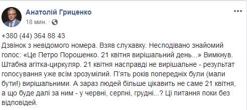 Прочитав зранку вашу статтю, думав дурня повна, буде петро таким займатися, як у ввечері дзвонить, це ж як, людина президентом хоче далі бути, номер з якого дзвонили 0931701643