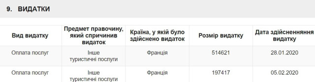 Так, Порошенко 28 січня заплатив за туристичні послуги у Франції 514,6 тисячі гривень, а 5 лютого – ще 197,4 тисячі.