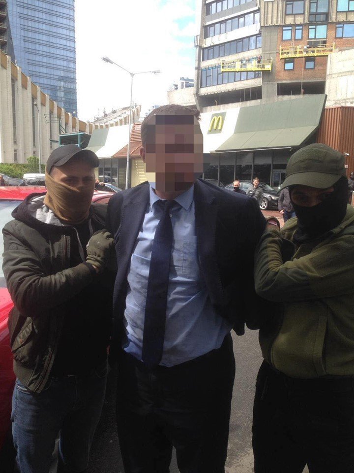 Під час одержання 5 тисяч доларів та 165 тис. грн його затримали прокурори спільно зі Службою безпеки та Печерським управлінням поліції Києва.