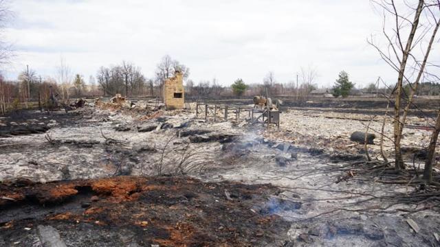 Як відомо, лісова пожежа почалася 16 квітня поряд із селами Рудня і Виступовичі Житомирської області. Загальна площа пожежі становила близько 50 гектарів, а 17 квітня вогонь пішов далі до сусідніх сіл. У Житомирській області станом на вечір 17 квітня внаслідок розповсюдження вогню серед лісових масивів знищено та пошкоджено 43 нежитлових і 38 житлових будинків.