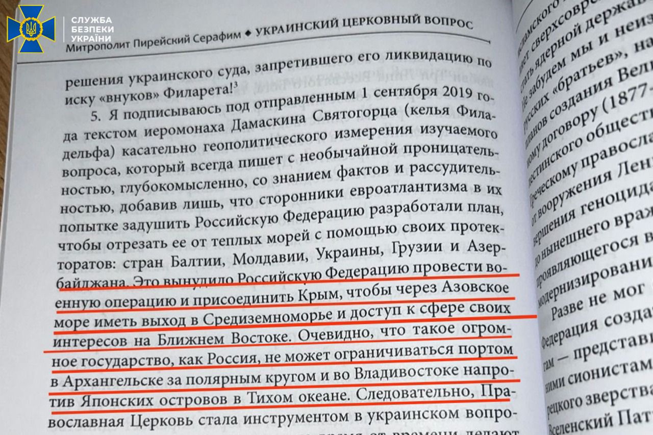 Серед іншого у них виявлено листування митрополита Кіровоградського і Новомиргородського з патріархом московським кирилом та вилучено велику кількість виготовлених у рф антиукраїнських матеріалів. У текстах містяться ознаки вчинення кримінальних правопорушень, передбачених двома статями ККУ.