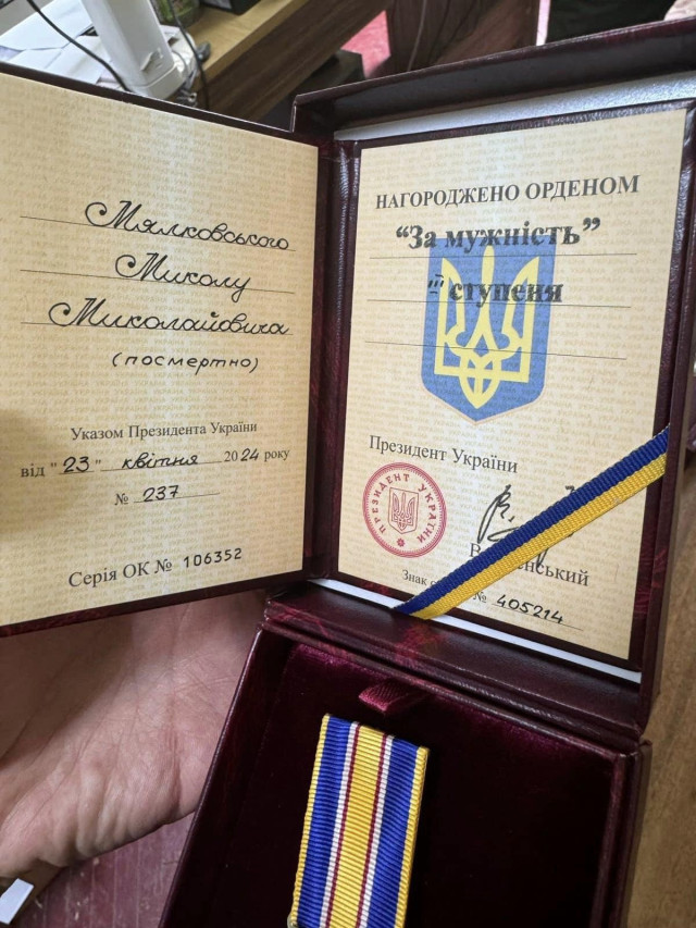 28-річного лучанина Миколу Мялковського, який віддав своє життя за Україну, посмертно нагородили високою державною відзнакою – орденом «За мужність» III ступеня.