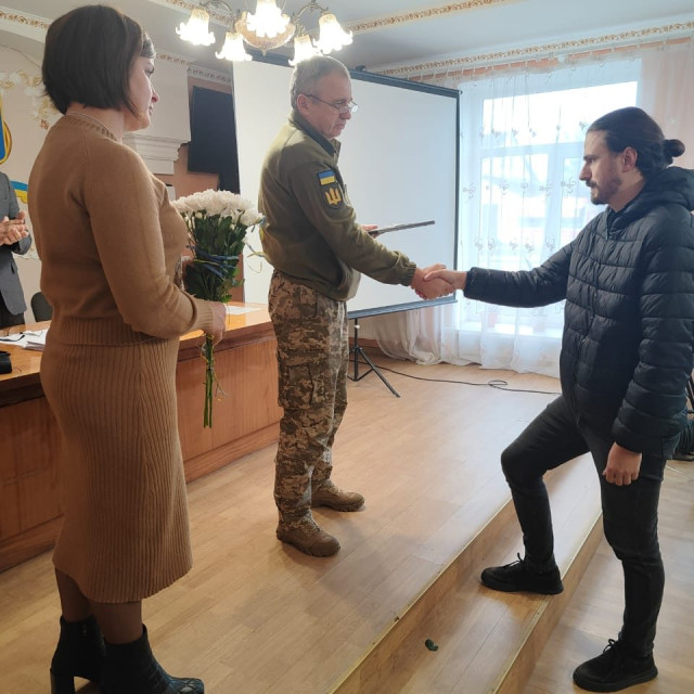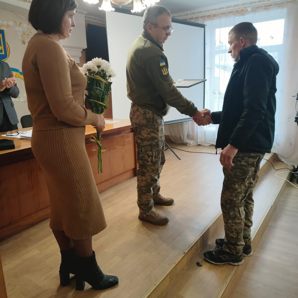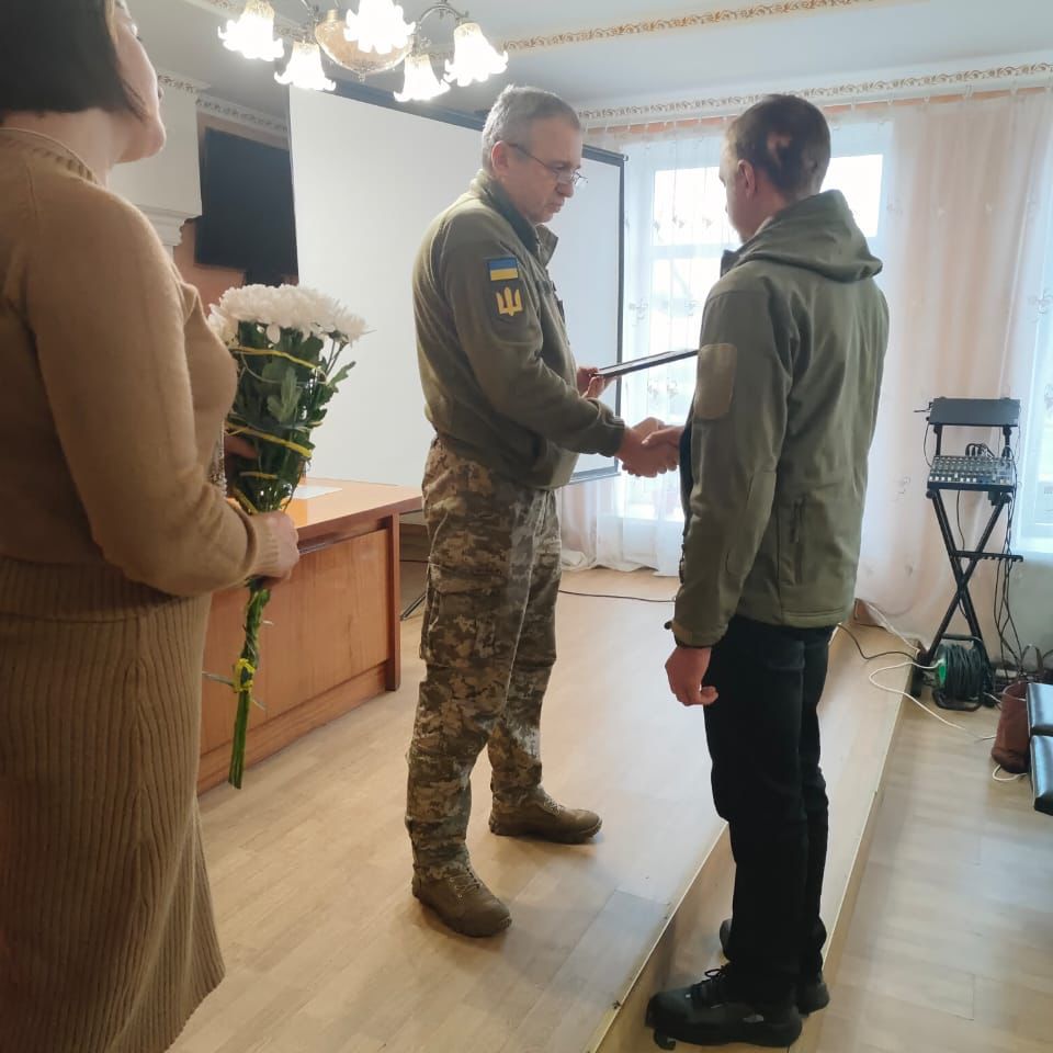Також було вручено чотири відзнаки Міністра оборони України «За поранення» військовослужбовцям, які отримали бойові травми під час виконання завдань на фронті: Сергію Близнюку, Павлу Фальчуку, Юрію Півтораку, Юрію Близнюку.