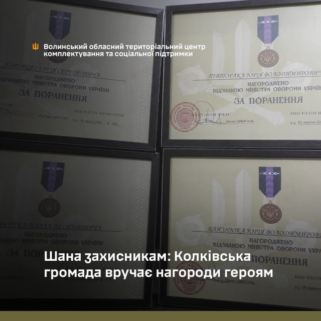 Сьогодні під час чергового засідання виконкому Колківської селищної ради відбулося урочисте вручення державних і відомчих нагород захисникам України та їхнім родинам.
