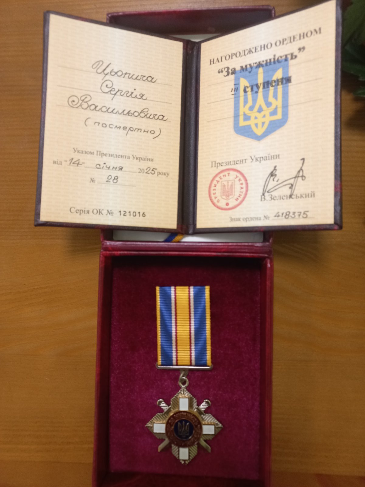 Посмертний орден Героя з Волині Сергія Цьопича передали його мамі