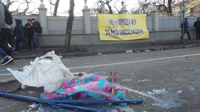 Нагадаємо, 17 грудня під Верховну Раду прийшли мітингувальники, які протестують проти запуску в Україні ринку землі. Після того, як правоохоронці прибрали з Грушевського військові намети, які намагалися встановити протестувальники, учасники акції почали кидати в правоохоронців каміння, порожні пластикові пляшки і димові шашки. Також було видно використання газових балончиків.