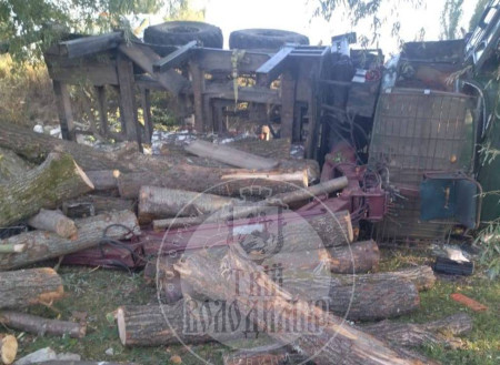 Зі слів очевидців, водій вантажівки не впорався з керуванням, транспортний засіб з'їхав з дороги та перекинувся. Чоловік отримав тілесні ушкодження.
