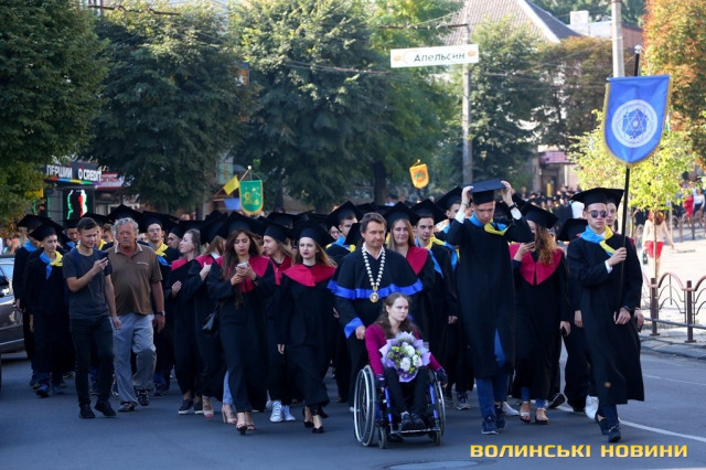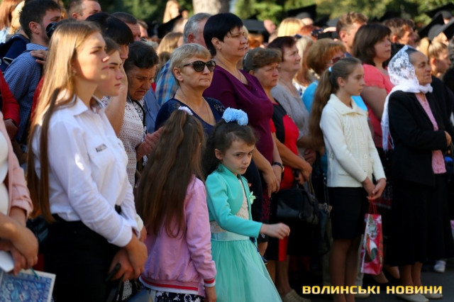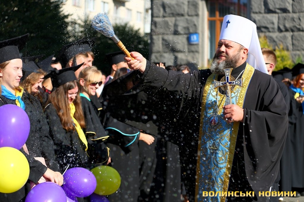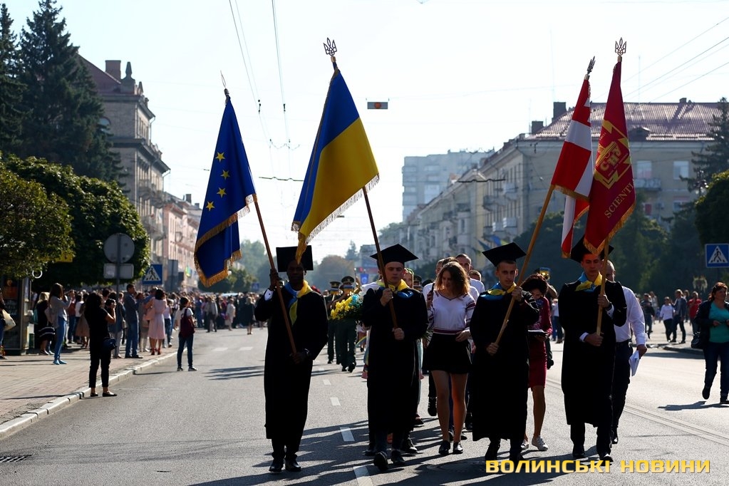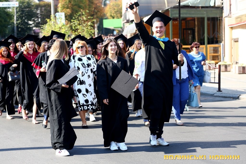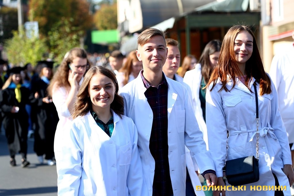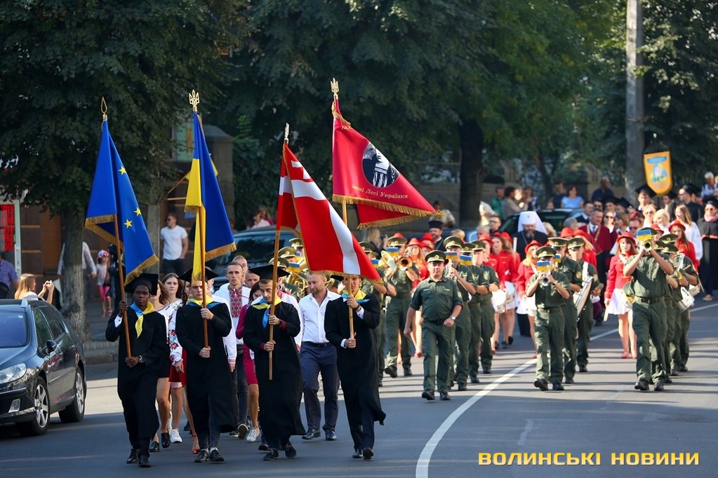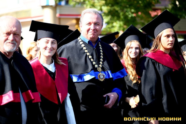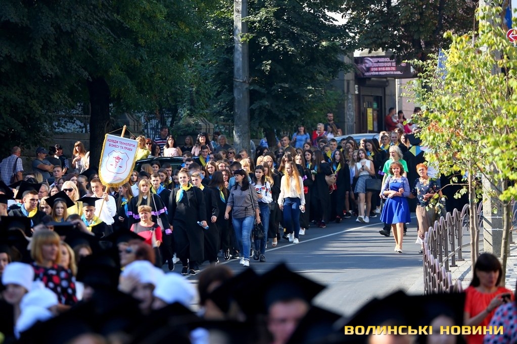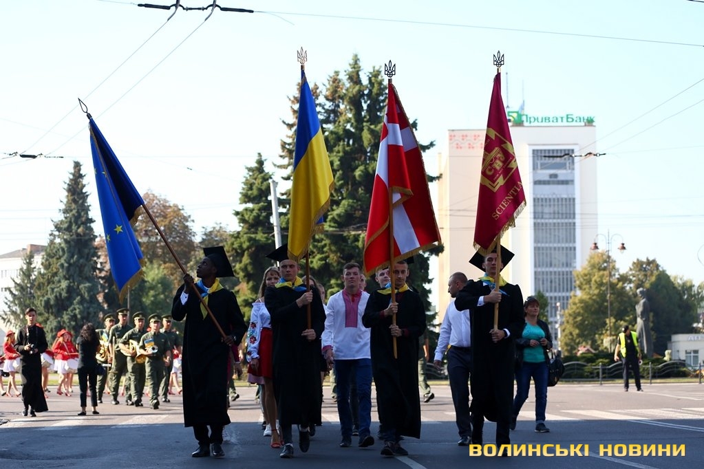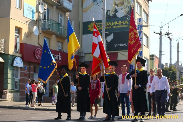 «Черговий ступінь після закінчення університету – це крісло міністра освіти. Сьогоднішньому вашому міністру трішки більше років, аніж студентам, які закінчили університет. Це робить нас відповідальними за нашу Батьківщину, адже Господь кожного кличе в свій час до виконання своїх обов’язків: кого в юному віці, кого в старшому. Я бажаю вам, аби ви усвідомили, що найкраще там, де ти народився. Європа – це не територія, це стан нашої душі. Тому бажаю вам гарної мрії, яка б збувалася у вашому житті. Вірте у себе, ставте собі високі планки і нехай Боже благословення допомагає вам», – звернувся до першокурсників Михаїл.Після молитви студенти поклали квіти до пам’ятників знаковим людям в історії України, а велелюдна урочиста хода представників усіх факультетів та інститутів вишу вирушила від головного корпусу університету проспектом Волі та вулицею Винниченка до стадіону СНУ. Впродовж ходи студенти багато посміхалися, спілкувалися та робили пам’ятні селфі.Першокурсники присягли на вірність у навчанні і праці своїй альма-матер, рідній Волині та українському народу, а потім пішли знайомитися зі своїми факультетами.