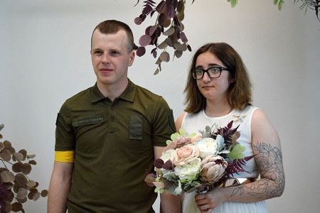 Нацгвардієць Микола та його наречена Олена познайомилися у соцмережах. Разом працювали у Києві. Та з початком повномасштабної війни доля розвела закоханих: Микола мобілізувався до Нацгвардії в Луцьку, Олена лишилася у столиці.