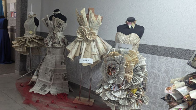 У Луцькому центрі професійно-технічної освіти відкрилася виставка-конкурс, на якій представили сукні з паперу, прикрашені бантами з газет та квітами зі сторінок книг. Їх створили пів сотні студентів з Волині.