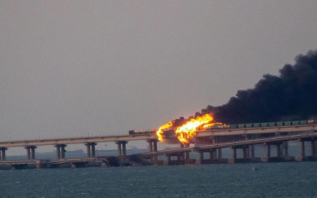 Вранці 8 жовтня на Кримському мосту сталася пожежа. Окупаційна влада Криму повідомляє, що на одній із ділянок переправи загорілася цистерна з паливом.