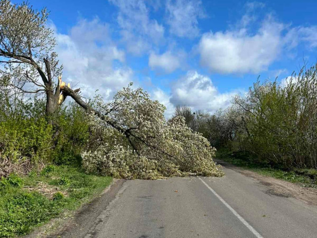 На території Волинської області спостерігаються сильні пориви вітру до 25–28 м/с. Негода спричиняє ускладнення на дорогах – на проїзну частину падають дерева та гілля.