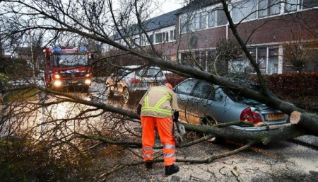 Як повідомляє кореспондент Укрінформу в Гаазі, через потужний вітер у Нідерландах спостерігається ускладнення руху громадського транспорту, на вулицях багато повалених дерев, потрощених машин.