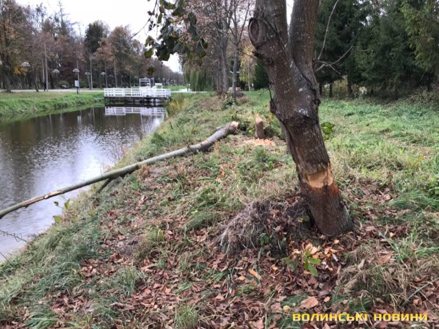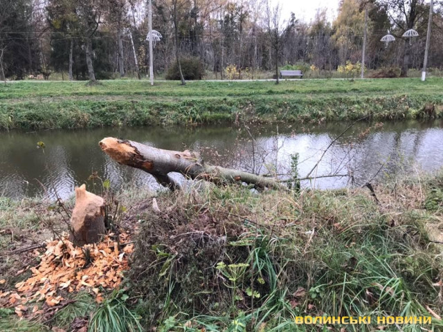 Більше десяти дерев у центральному парку міста пошкодили бобри. Кілька уже повалено. Прибирати їх, однак, не збираються, забезпечивши таким чином процес природнього усунення насаджень.