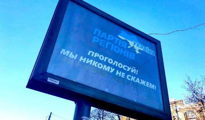 На ще одному білборді, що розташований на Дмитрівській, "регіонали" пропонують проголосувати за них, обіцяючи нікому про це не розповідати.