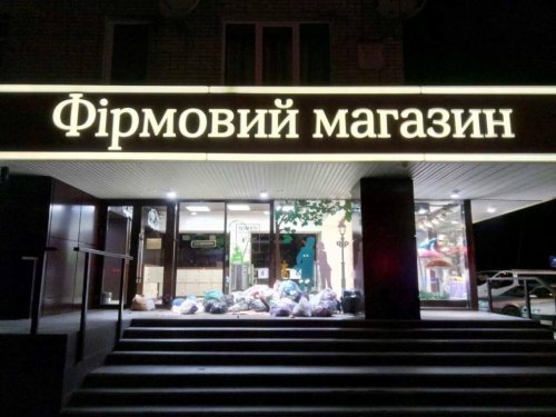 Мішками зі сміттям закидали магазин на вул. Володимира Великого. Поруч зі сміттям також залишили плакати з написами «Поверни ВК» і «Прибери сміття».