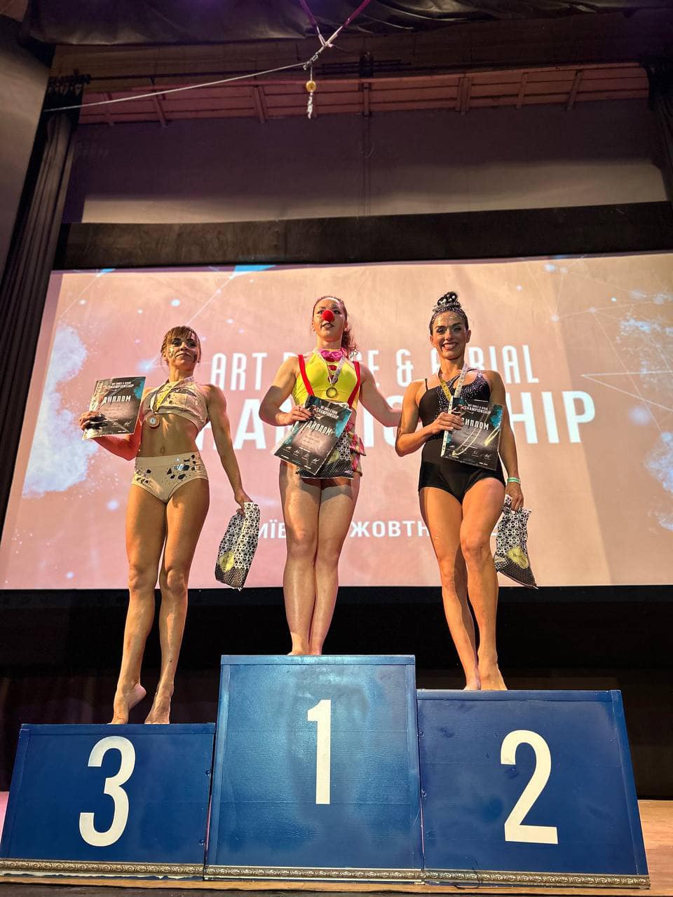 На чемпіонаті виступала і тренерка дівчат Катерина Фецяк. Вона здобула срібну медаль з pole art у категорії професіонали. А також перемогу в категорії повітряне кільце серед аматорів.