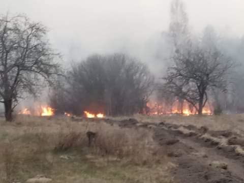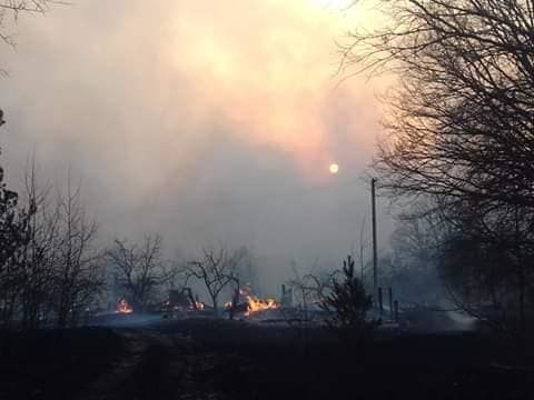 Відзначається, що о 19:00 пожежу будівель ліквідували і о 23:25, локалізували пожежу сухої трави і трав’яного настилу (вогнем пройдено 80 га трав’яного настилу та 2 га лісового масиву).