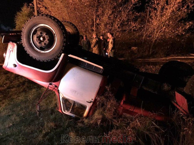 Зазначається, що під час ліквідації пожежі трапилася дорожньо-транспортна пригода – перекинулася пожежна машина.