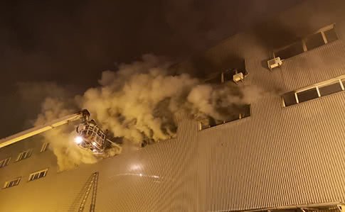 Пожежа виникла 2 лютого о 11:52 у Деснянському районі по вул. Червоноткацька, 69 у складській будівлі ТОВ «Адоніс Проект».