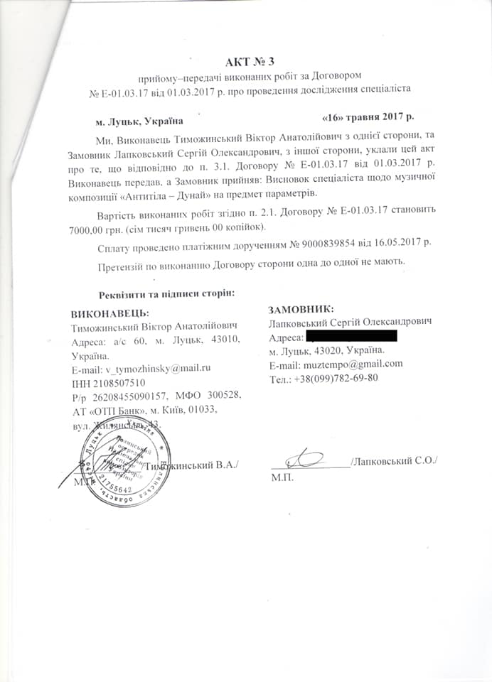 Зазначимо що Тиможинський отримав від Лапковського за такий аналіз 21 000 грн.