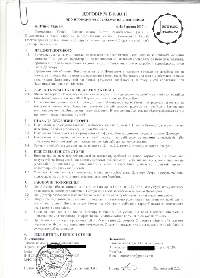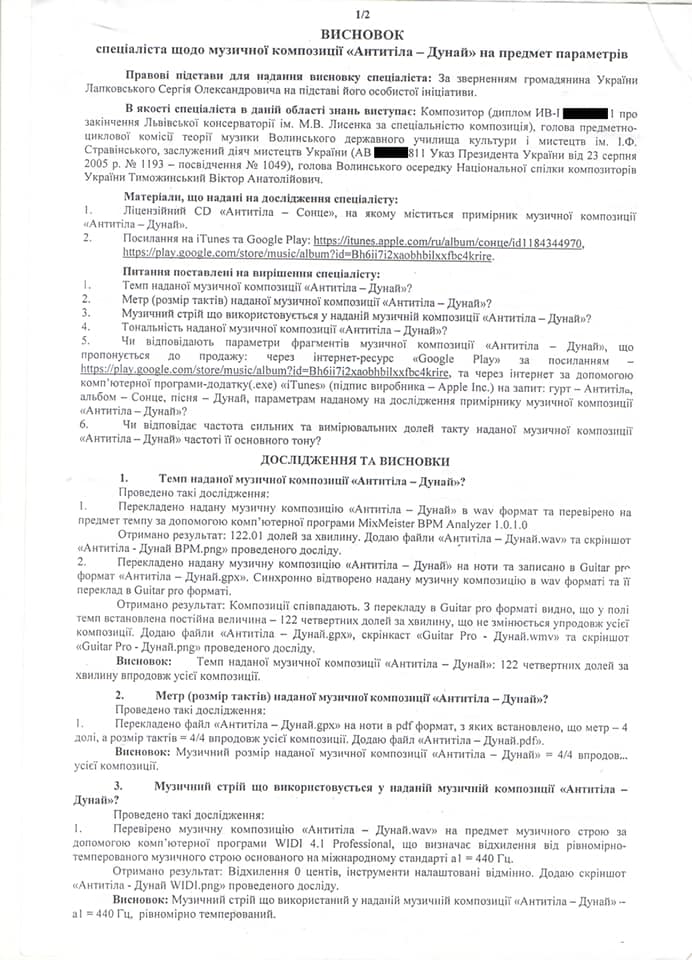І це ще не все! З документів видно що Лапковський & Co як мінімум рік готувались до судового позову на Антитіла. При чому додані до судової справи експертні висновки містять юридичні помилки з назвами й інших пісень гурту «Антитіла», – йдеться у повідомленні.