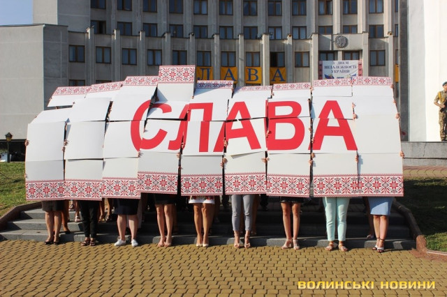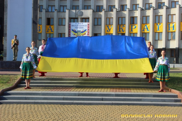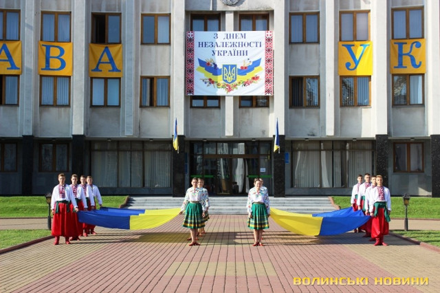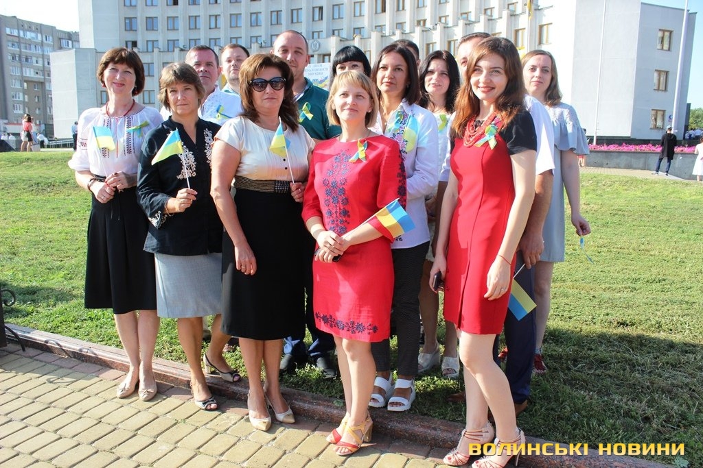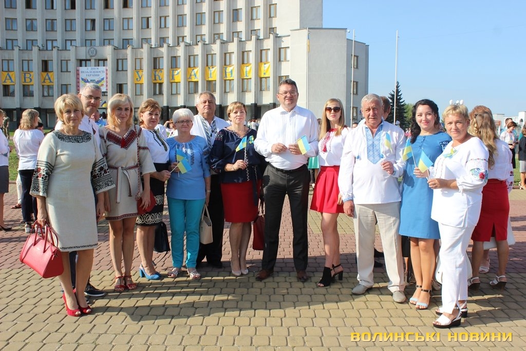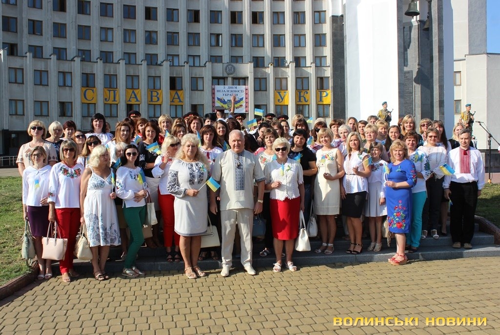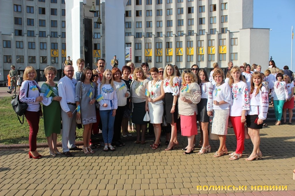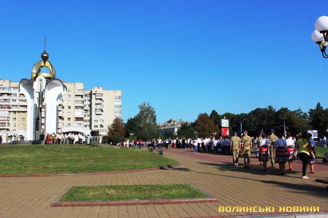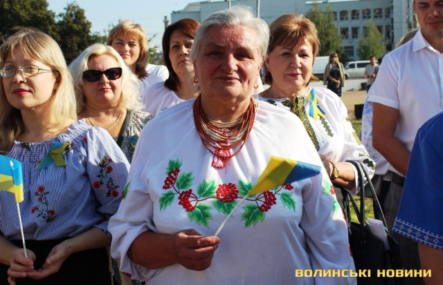 Сотні волинян вітали один одного із прийдешнім святом Днем Незалежності України. Більшість присутніх були вбрані у вишиванки.