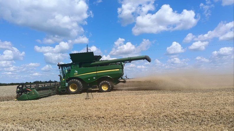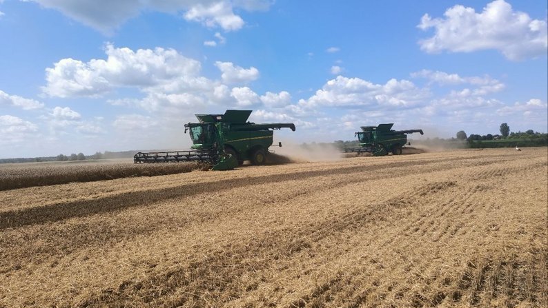 У господарстві уже зібрали ячмінь, нині молотять озиму пшеницю. У полі техніка та люди працюють з 8-ї ранку, без вихідних, щоб встигнути все, поки є погода.
