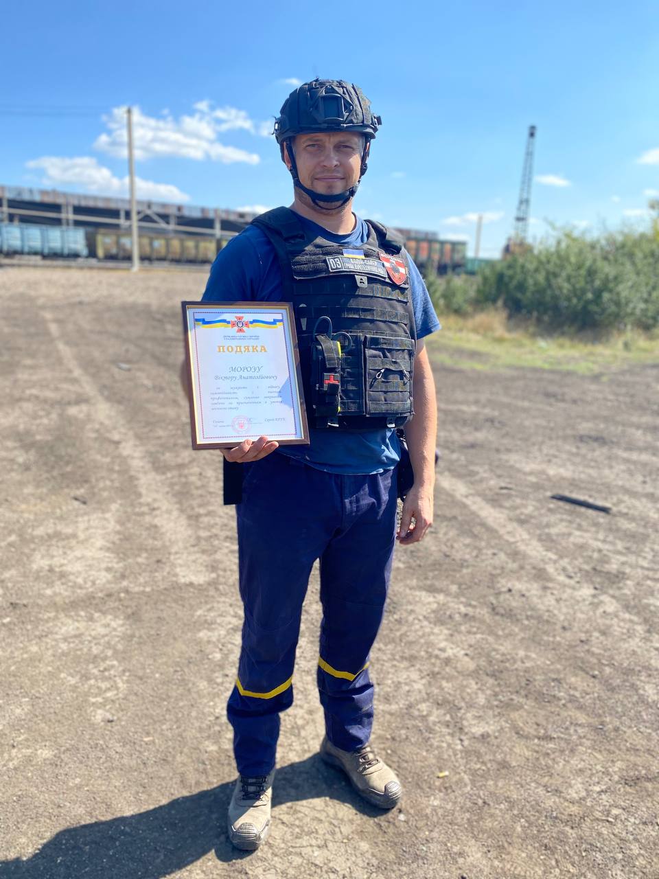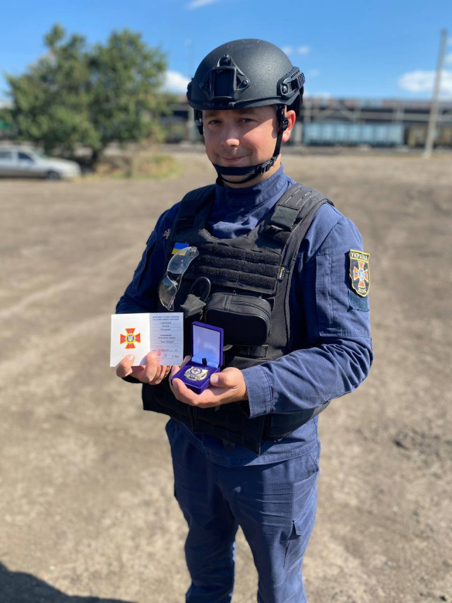 За мужність і відвагу, самовідданість і високий професіоналізм, сумлінне виконання завдань за призначенням в умовах воєнного стану нагрудним знаком «Знак Пошани» нагороджений начальник групи піротехнічних робіт та гуманітарного розмінування Віталій Гаврилюк.