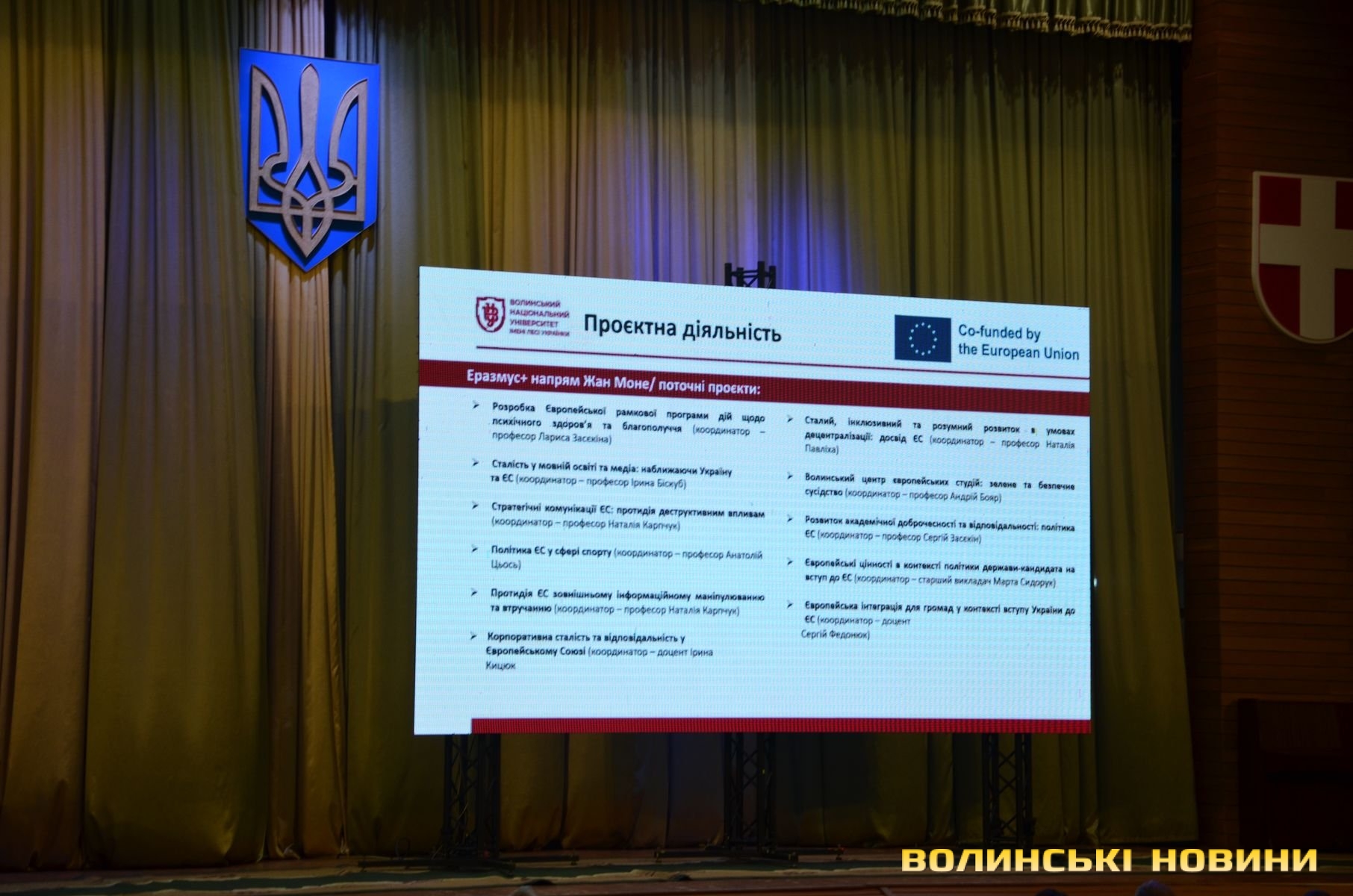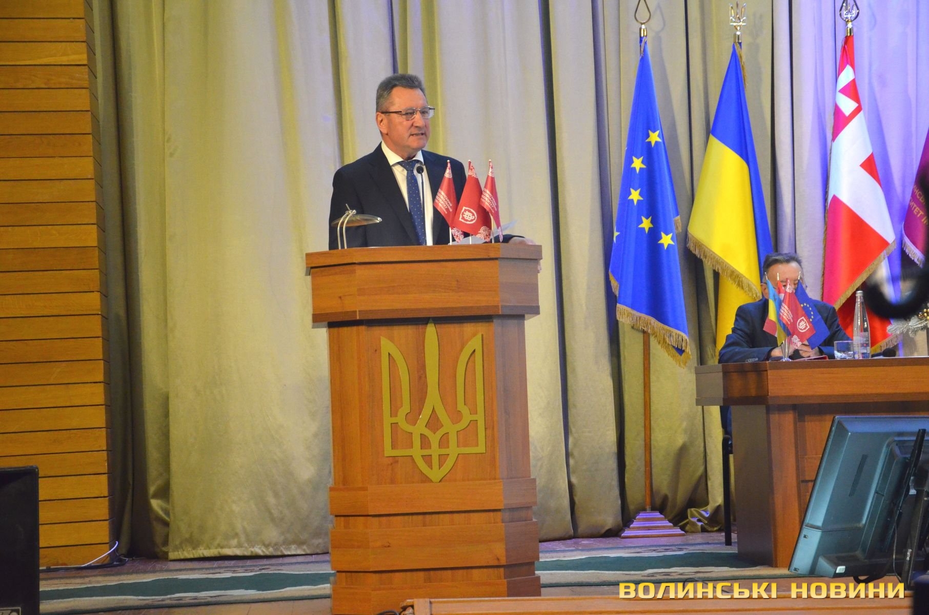 Щодо міжнародної діяльності, то ВНУ знову розташувався в лідерах за впровадженням програми «Подвійний диплом». Триває реалізація кількох міжнародних проєктів.Принагідно ректор вишу нагадав очільникам області про необхідність добудувати спортивний комплекс «Гарт» на Світязі. З його слів, це покращить розвиток Шацького регіону в осінньо-весняний період.
