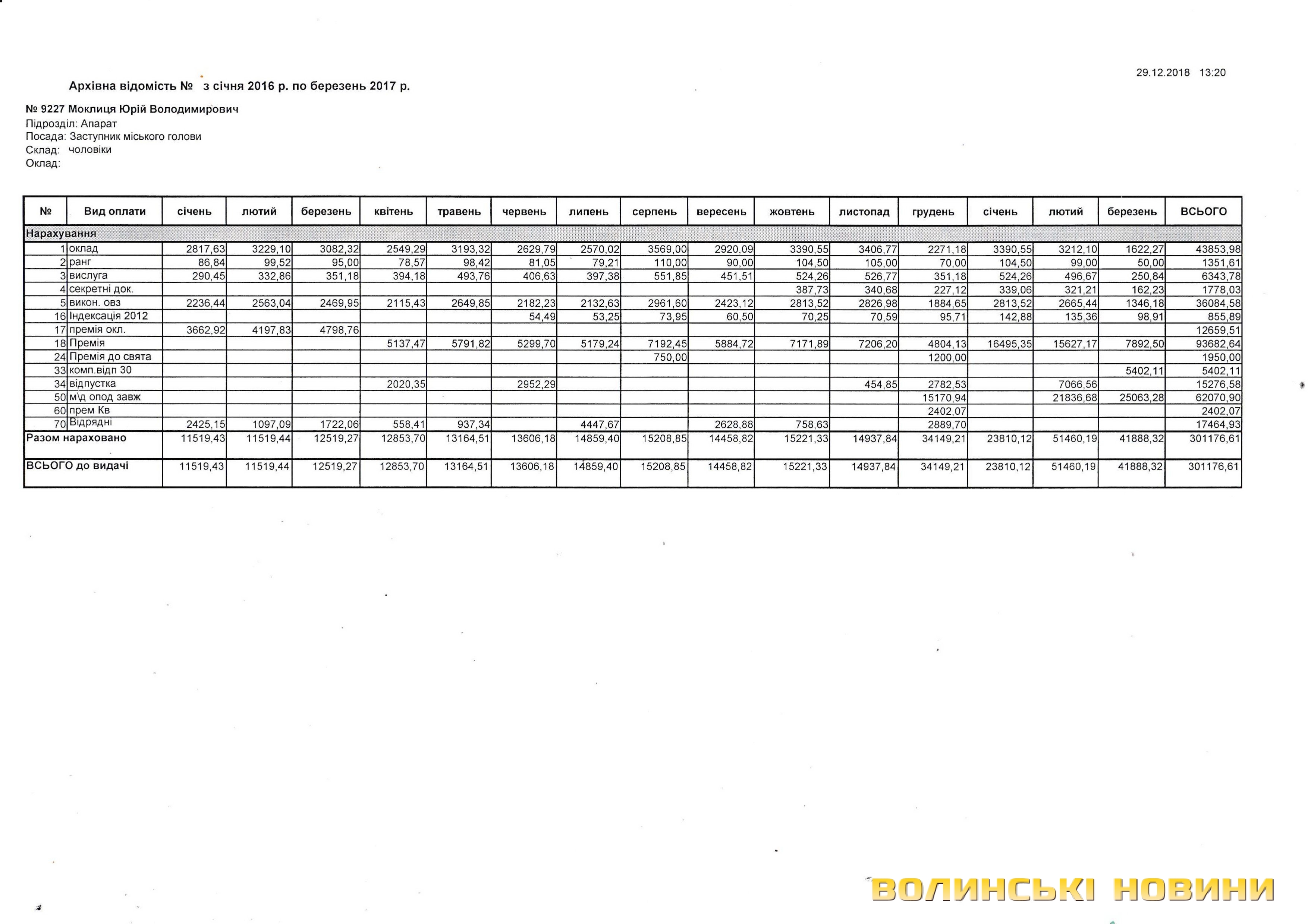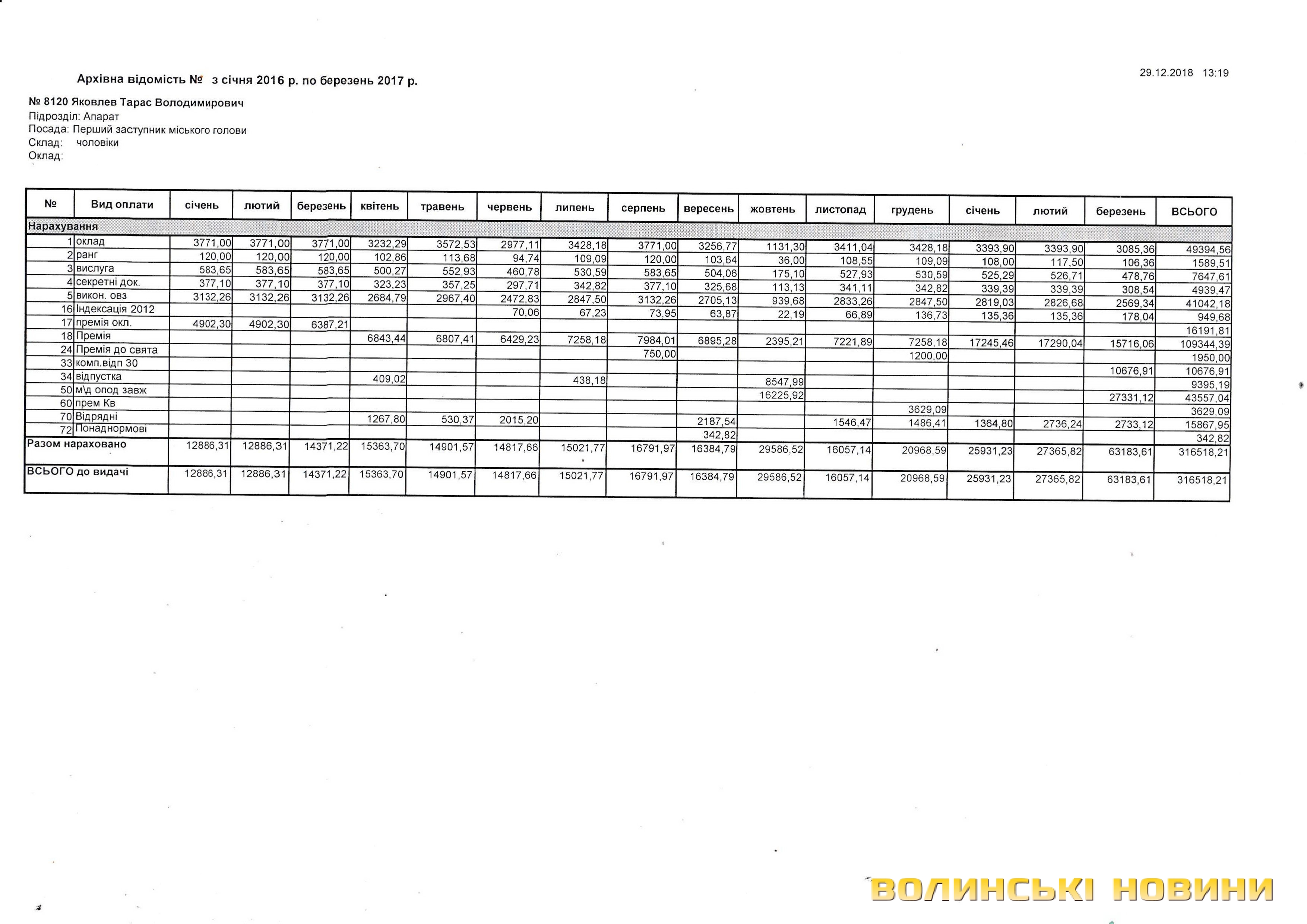 Отож, скільки становили заробітні плати та премії секретаря, заступників і помічників Луцького міського голови Миколи Романюка в період із січня 2016 року до березня 2017 року.