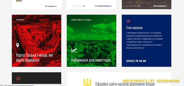 Також є інформаційний блок Інформація для інвесторів, завдання якого, - показати інвесторам, чому Луцьк достойний, аби в нього вкладали гроші.