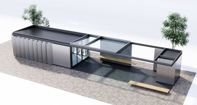 У Луцьку архітектори розробили проєкт зупинки з вбудованим магазином. У меншому модулі можна розмістити громадську вбиральню, газетний кіоск, термінал CityCard, банкомат або термінал банку.